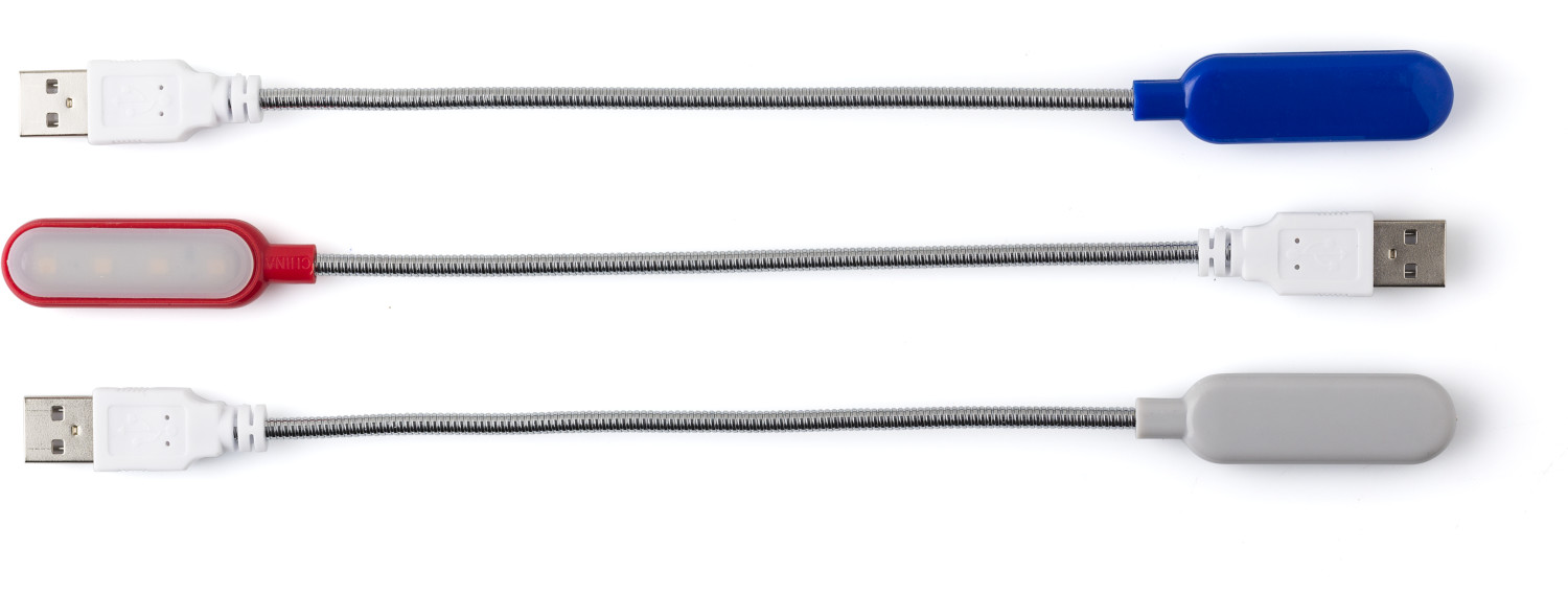 Laptop-Tastaturleuchte aus ABS und Metall mit flexiblem Arm, drei LED-Leuchten und USB-Anschluss. Verpackt im Polybeutel.