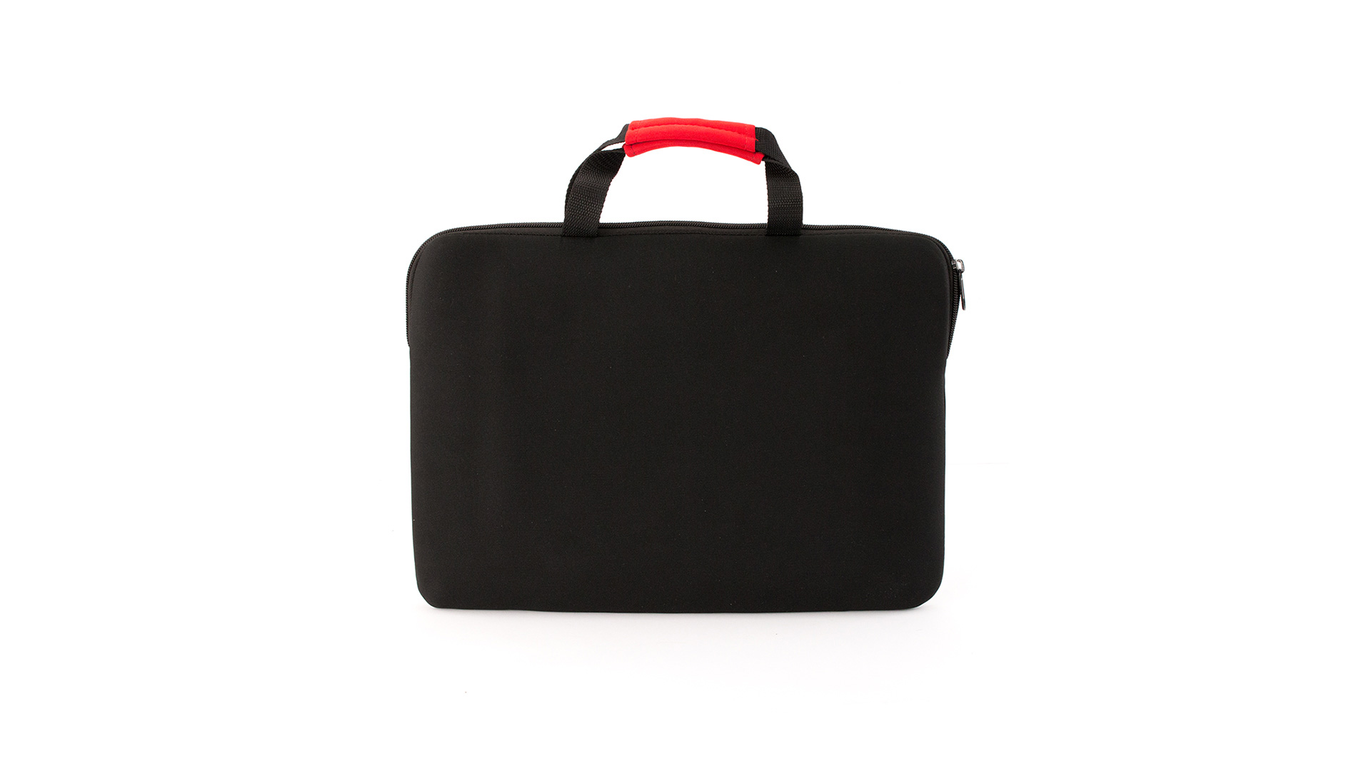 Robuste Dokumentenhülle aus weichem Soft-Shell mit Reißverschluss und Fronttasche. In elegantem Schwarz mit farbigen Verstärkungen an den Griffen.