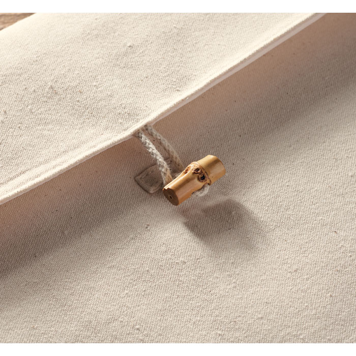 Gepolsterte 15'''' Laptoptasche aus Baumwolle 220 g / m². Innenfutter 120 g / m². Bambus-Knebelverschluss.