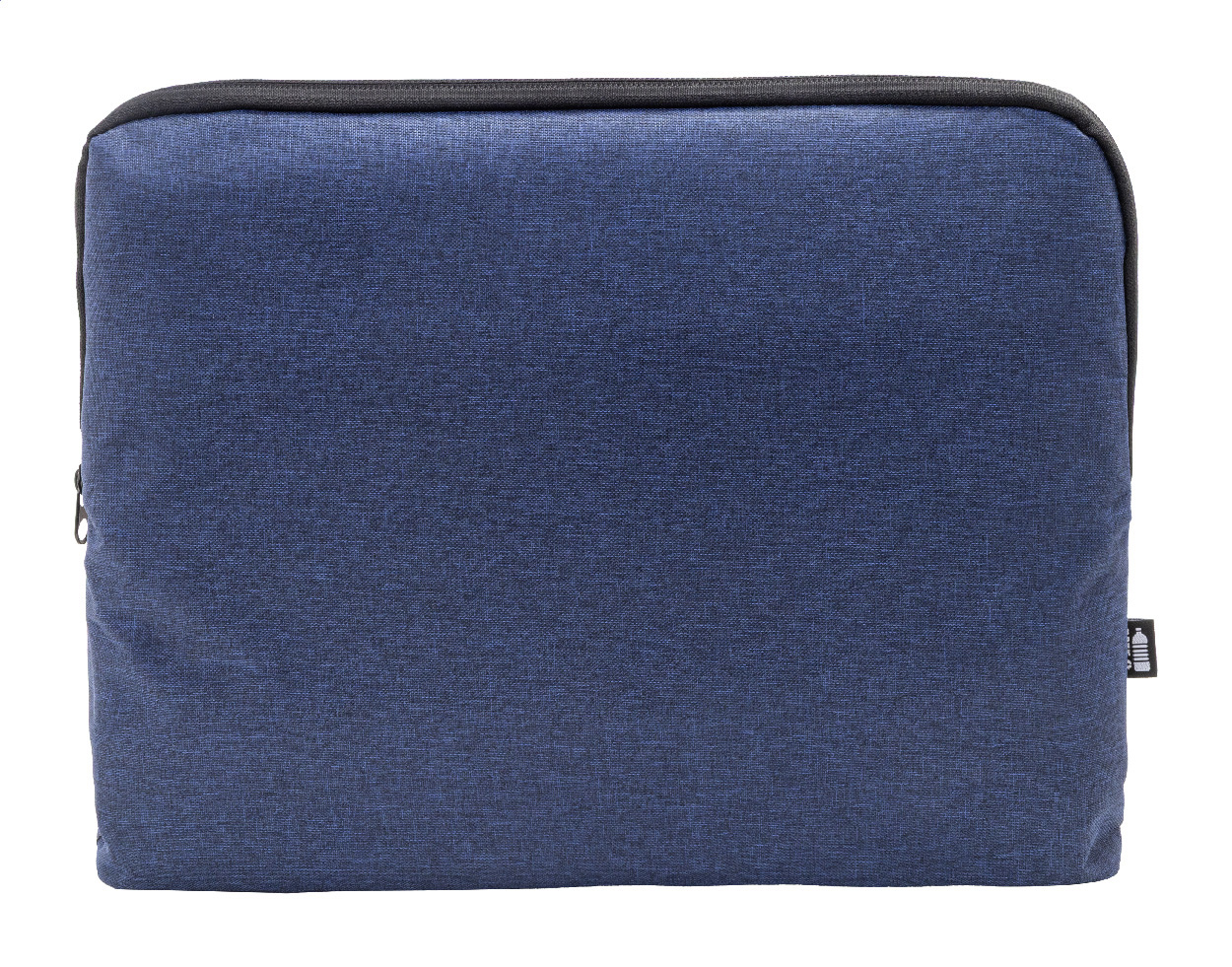 Laptoptasche aus 600D RPET-Polyester mit Reißverschlussfach und Innenpolsterung. Passend für Laptops bis 15 Zoll. Mit RPET-Label.