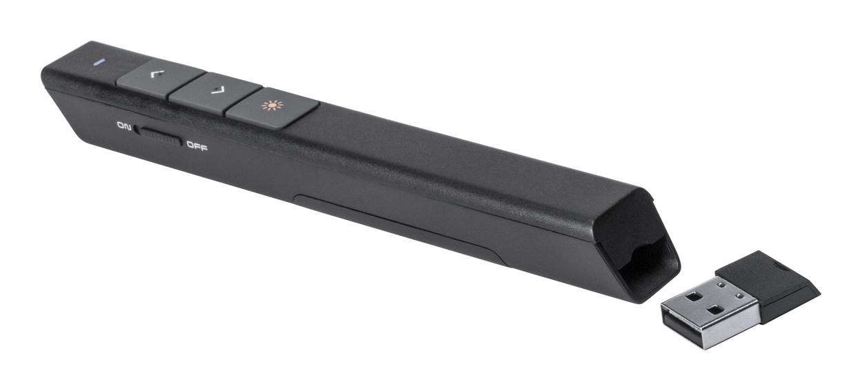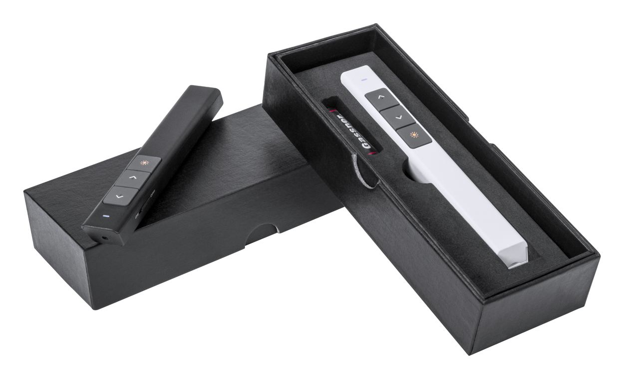 Laserpointer aus Kunststoff mit LED-Licht. Lieferung inkl. Batterie (1x AAA). Verpackt in Geschenkbox aus Karton.