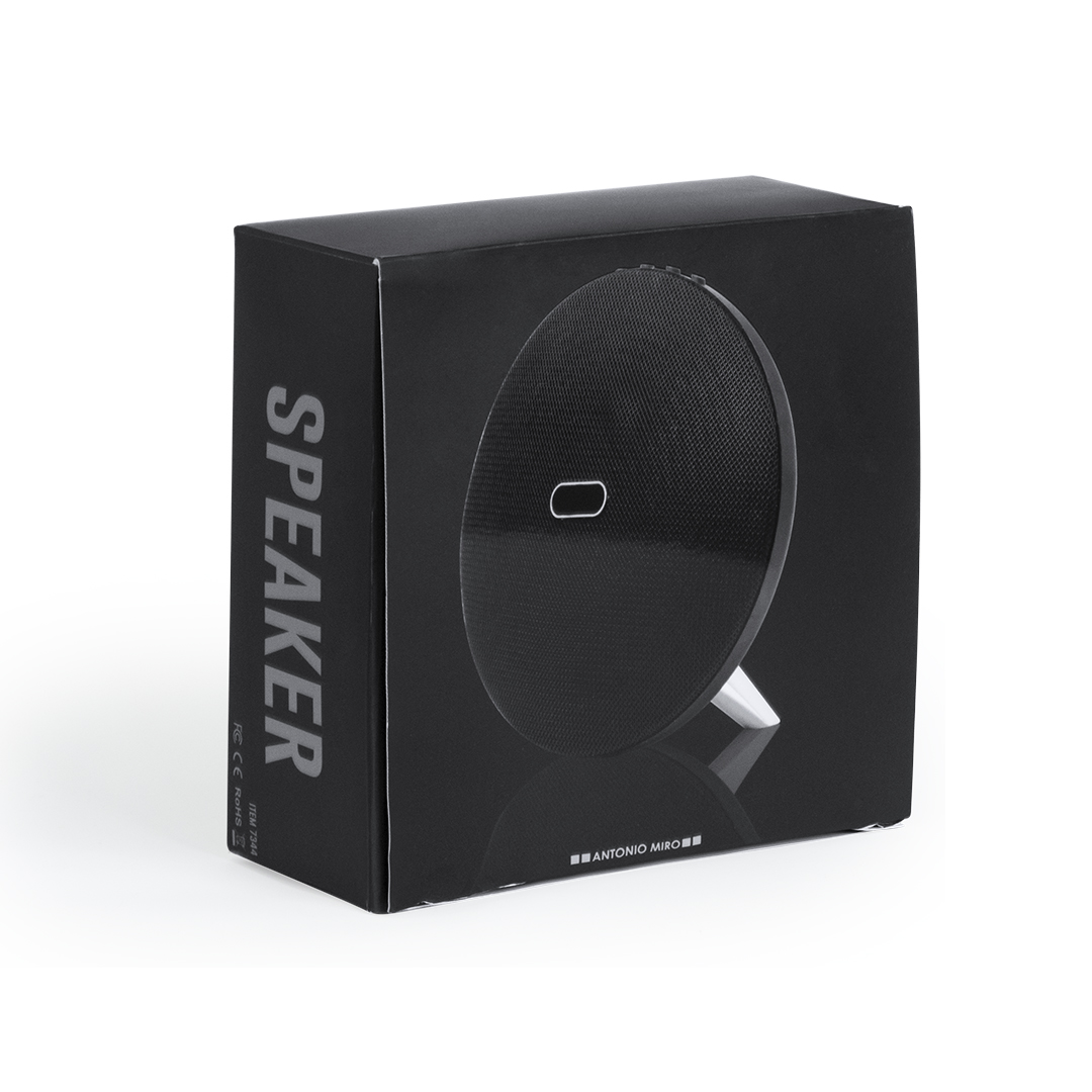 Bluetooth®-Lautsprecher in eleganter schwarzer Ausführung mit Kontrastdetails in Silber. Bietet 3 W Leistung, FM-Radiofunktion, Freisprechfunktion, Slot für Micro SD-Karten von bis zu 32 GB Speicherkapazität und 3,5-mm-Buchse für Audioeingang. Mit rutschfesten Gummi-Details an der Unterseite. Mini-USB-Ladekabel sowie 3,5-mm-Klinkenkabel inklusive. Kompatibel mit iOS- und Android-Geräten. Präsentiert in einer attraktiven Designbox.
