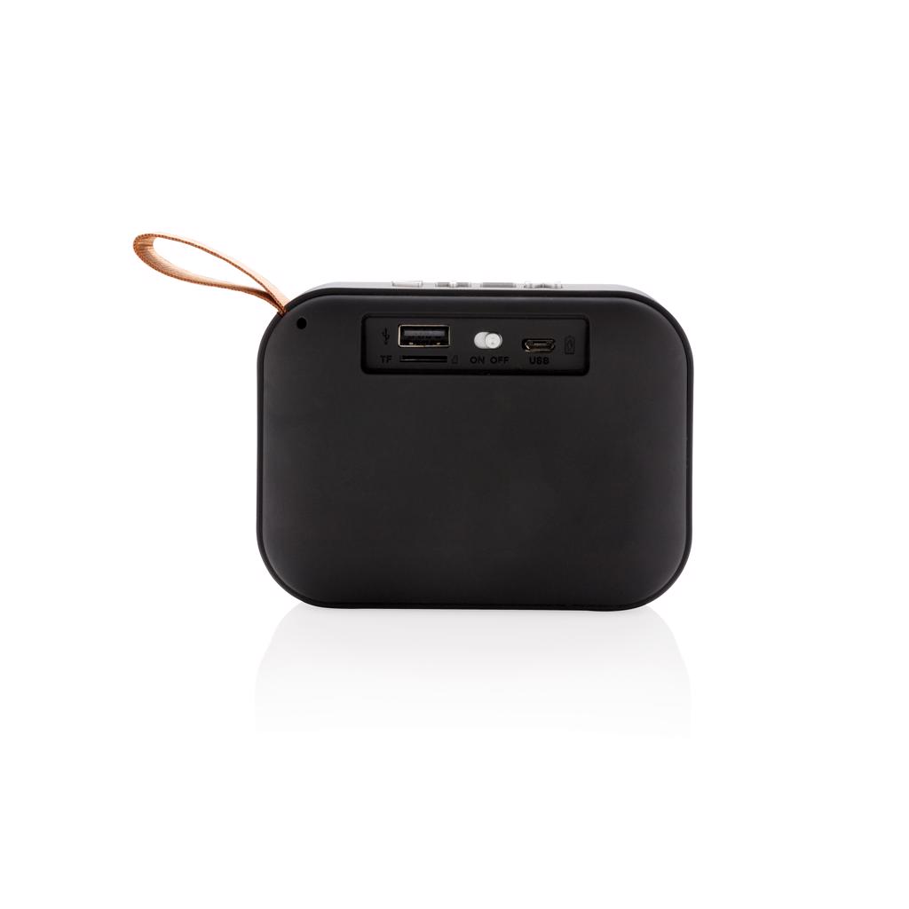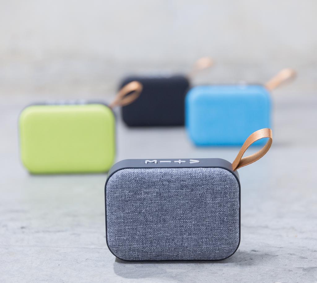 Der kabellose 3W Lautsprecher mit trendigem Stoffbezug, sowie ABS-Gehäuse mit Soft-Touch-Finish hat zudem noch Anti-Vibrations-Streifen am Boden des Gehäuses. Die BT 5.0 Technik garantiert eine saubere Verbindung auf bis zu 10m. Die 300mAh Batterie spielt Ihre Musik für bis zu 3 Stunden. Inkl. USB-C Kabel um den Lautsprecher zu laden.