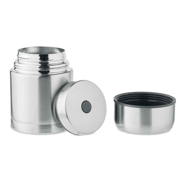 Doppelwandiger, isolierender Lebensmittelbehälter aus Edelstahl mit Schraubverschluss. Auslaufsicher. Füllmenge: 800 ml. In der Küche benötigt man immer Behälter zum Bevorraten. Halten Sie Ihre Zutaten und Lebensmittel in diesem Isolierbehälter frisch.