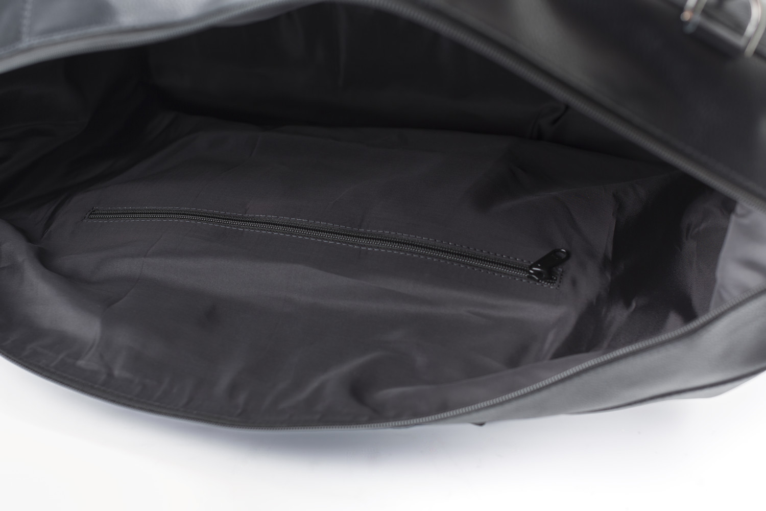 Sporttasche aus Leder mit Reißverschluss. Das Innere hat ein kleines Fach mit Reißverschluss. Mit zwei kurzen Leder- und Nylongriffen und einem verstellbaren Schulterriemen aus Nylon.
