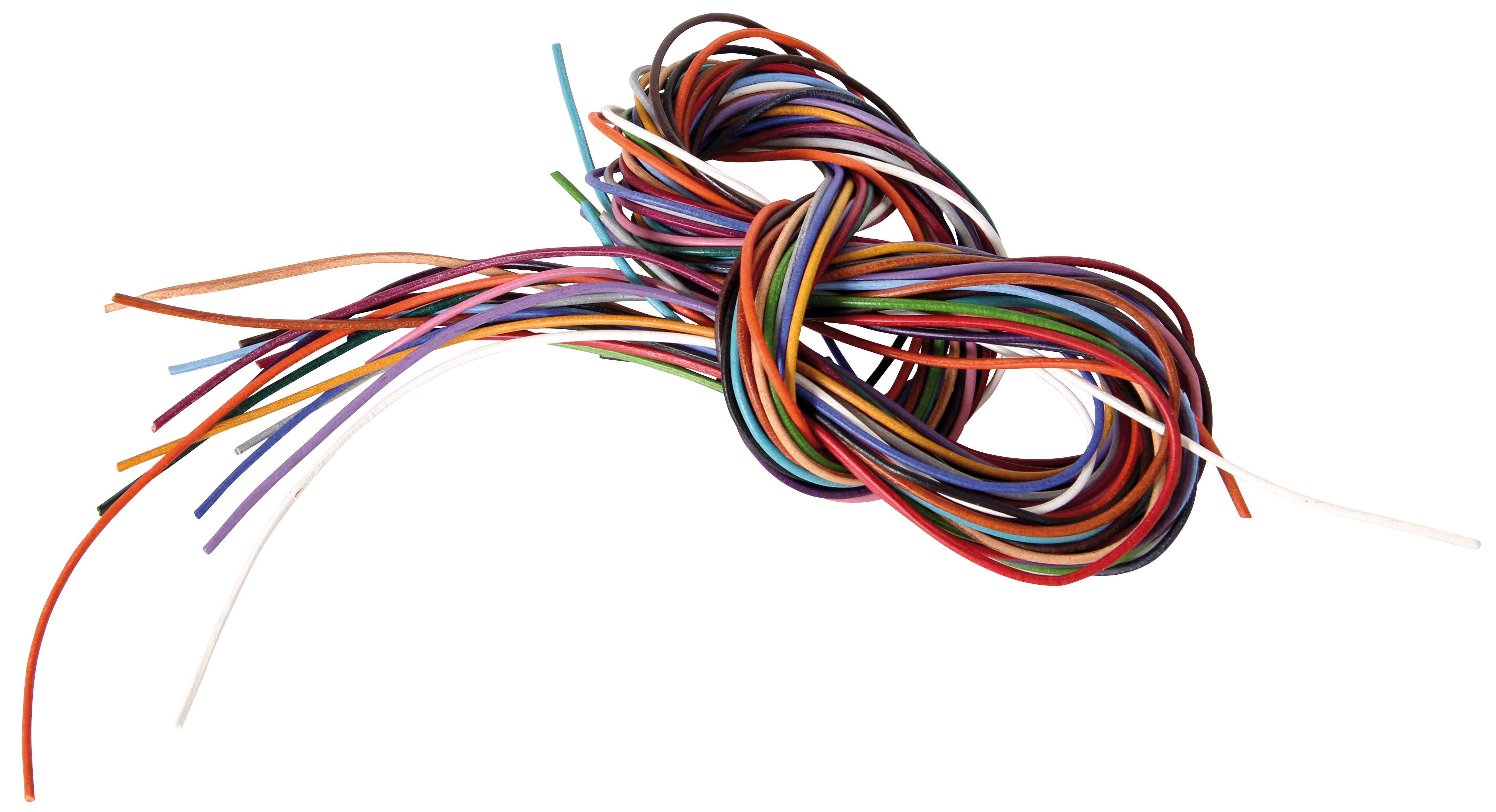 Das Sortiment besteht aus 20 farbigen Lederbändern. Ziegenleder ist besonders strapazierfähig!