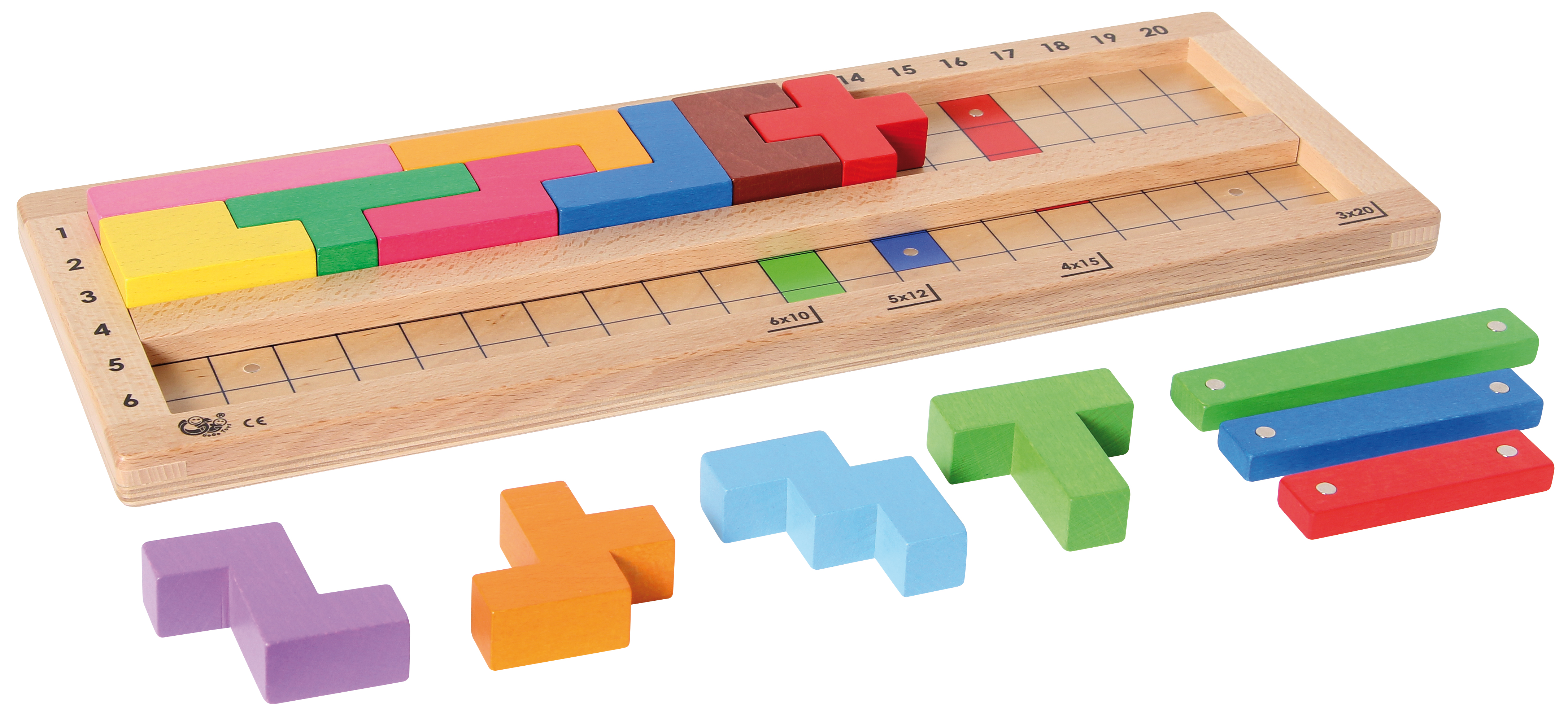 Das kreative Puzzlespiel aus Buchenholz bietet Groß und Klein eine nostalgische Alternative zu den allseits beliebten Computerspielen. Anhand der beiliegenden flachen Holzstäbe und der eingelassenen Magnete lässt sich die Spielfläche in vier verschieden große Flächen aufteilen und damit ergeben sich jeweils andere Lösungsvarianten, um alle 12 Spielsteine in dem zur Verfügung stehenden Feld unter zu bringen. Dieses Denksport-Spiel fördert das kreative Denken, die Vorstellungskraft sowie die Problemlösungsfähigkeit.