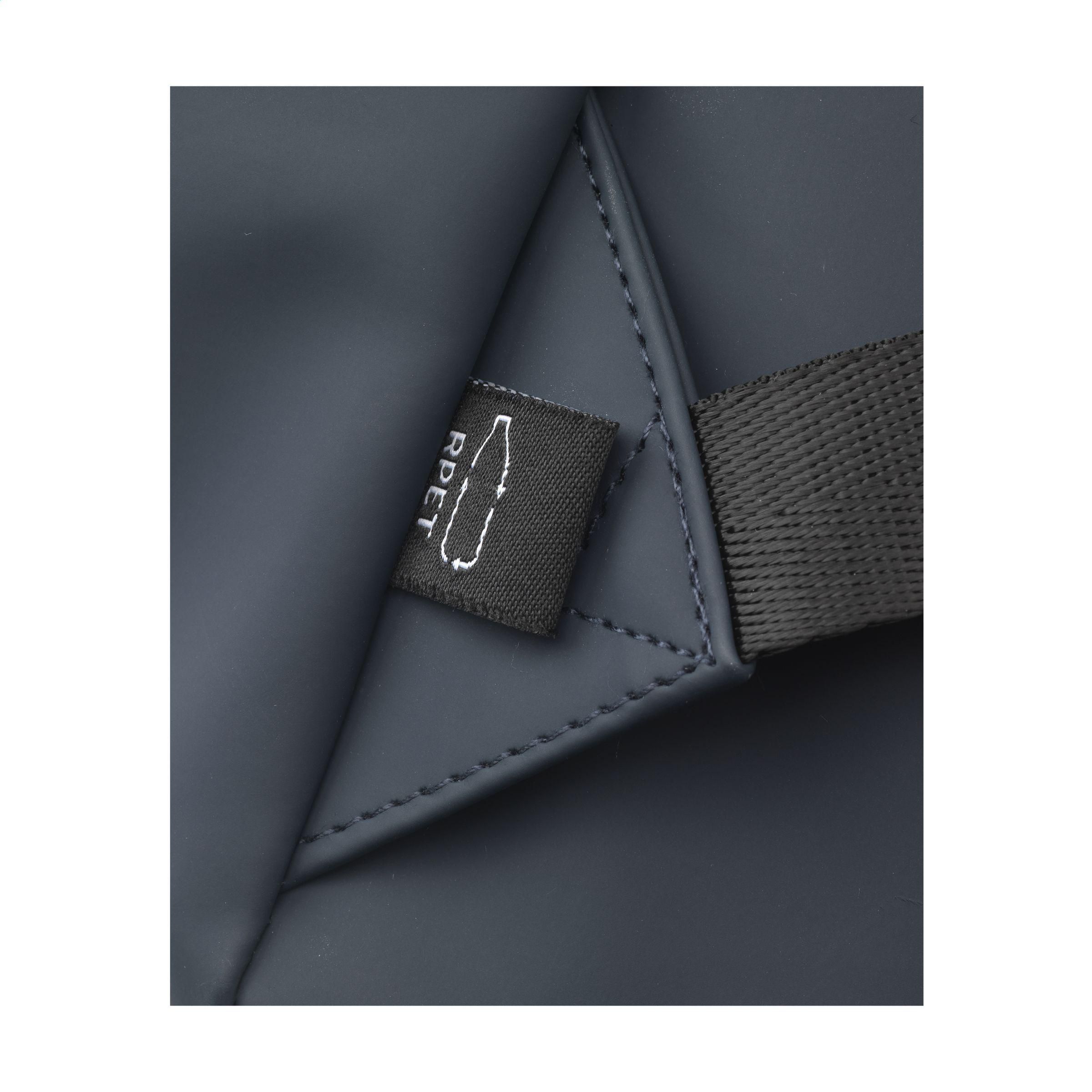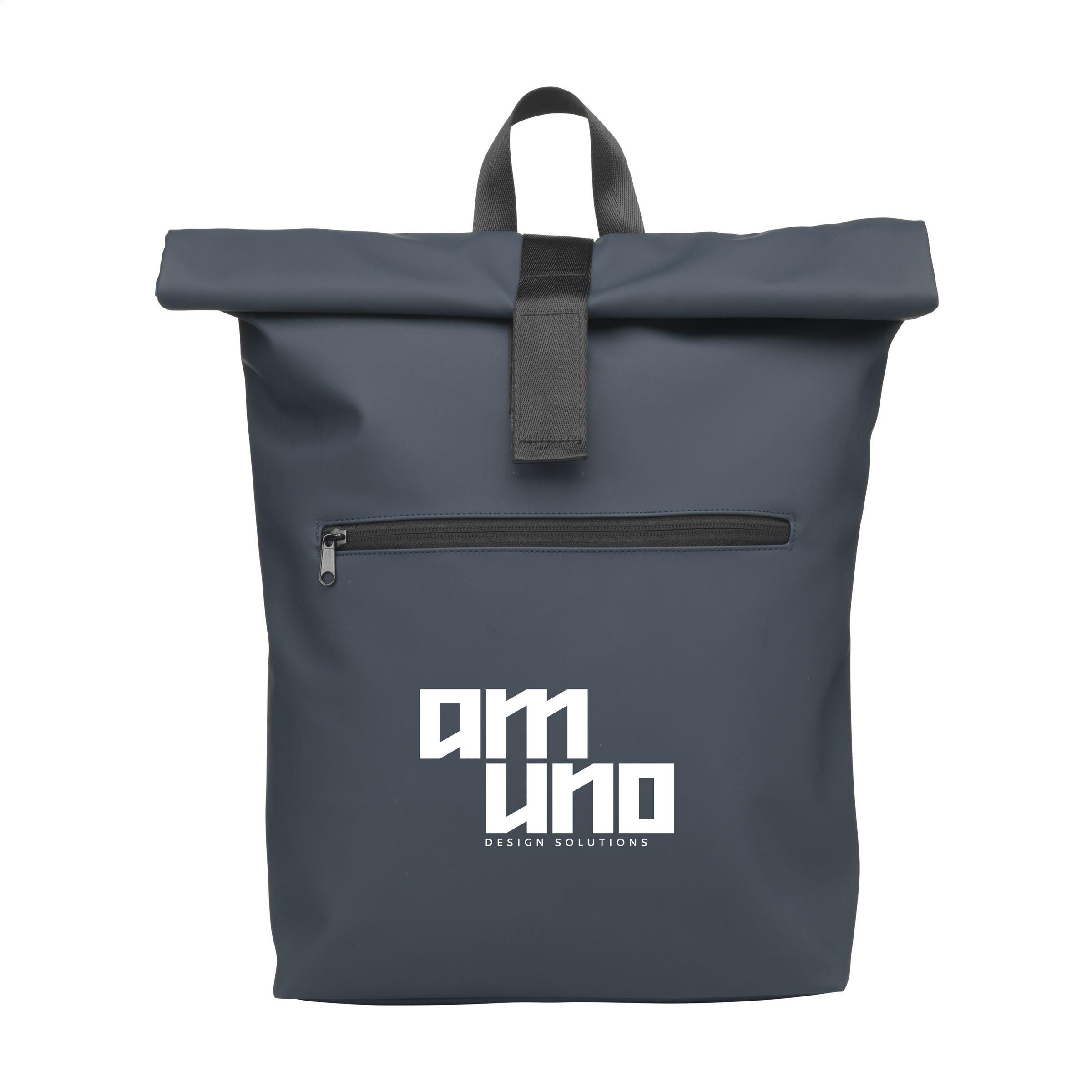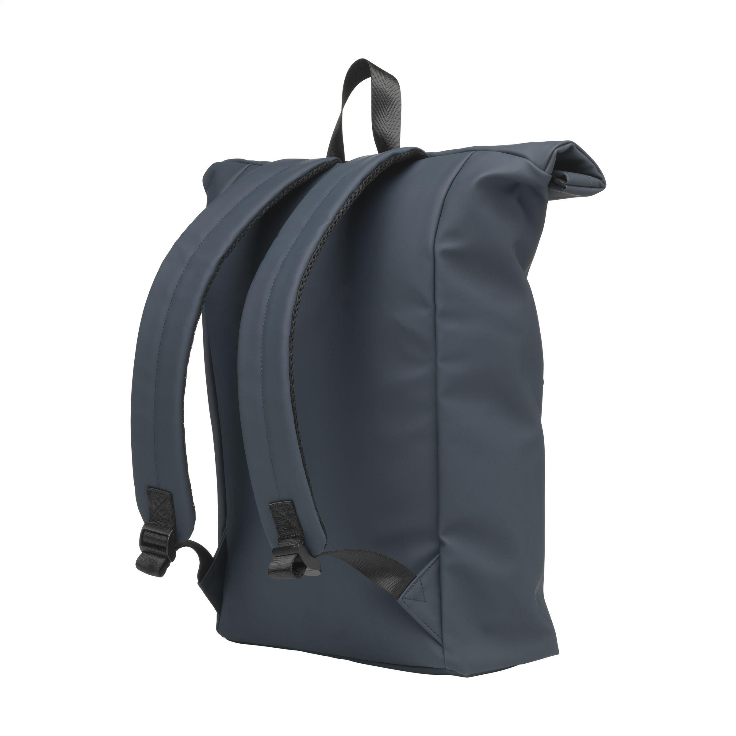 Praktischer, robuster und großzügiger 'Rolltop'-Laptop-Rucksack mit extra Reißverschlussfach auf der Vorderseite. Dieser Rucksack hat an der Oberseite nicht nur einen praktischen Rollverschluss mit Klettband, sondern auch einen Reißverschluss. Dieser Rucksack besteht aus wasserabweisendem PU, zu 5% aus recyceltem PU und zu 42% aus recyceltem Polyester. Der Rucksack hat ein sauber verarbeitetes Futter aus recyceltem PET und ist mit allem Komfort ausgestattet. Das großzügige Innenfach verfügt über ein separates Fach für einen Laptop (bis zu 15,6 Zoll) oder ein Tablet. Darüber hinaus finden Sie auf der Innenseite mehrere Einschubfächer zur organisierten Aufbewahrung von Handy, Schreibutensilien oder anderem Zubehör. Ein elastisches Band im Inneren hält eine Trinkflasche aufrecht an ihrem Platz. Mit praktischer Trageschlaufe. Für zusätzlichen Tragekomfort sind die Rückseite und die verstellbaren Schulterriemen mit weichem Schaumstoff ausgestattet. Dieser Rucksack ist perfekt für den täglichen Gebrauch und lässt sich leicht in die Schule oder zur Arbeit mitnehmen. RCS-zertifiziert. Gesamtes recyceltes Material: 47%. Fassungsvermögen: ca. 19 Liter.