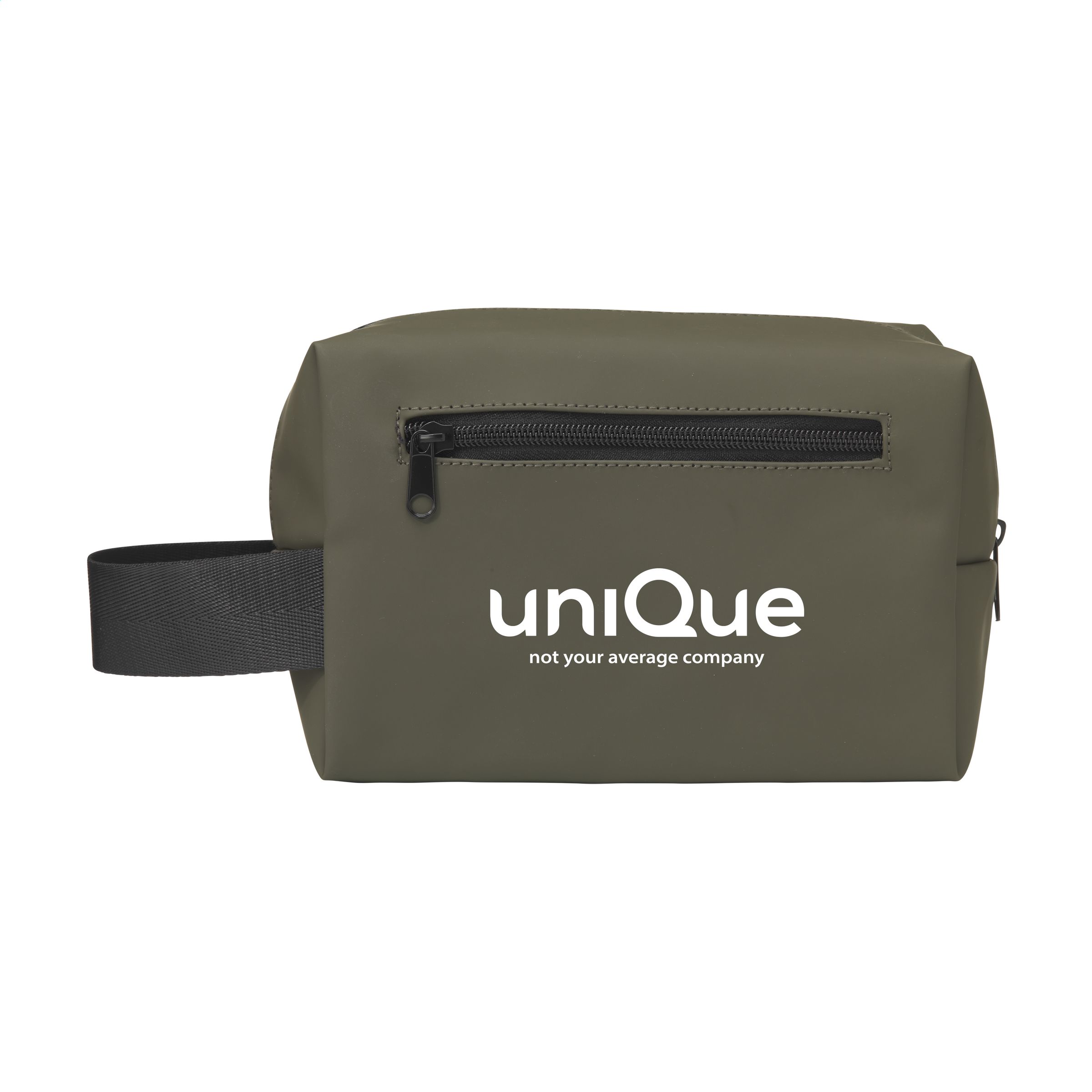 WoW! Praktischer und robuster Kulturbeutel zur Aufbewahrung von Körperpflegezubehör. Das Außenmaterial dieses Kulturbeutels besteht aus wasserabweisendem PU, zu 7% aus recyceltem PU und zu 32% aus recyceltem Polyester. Dieser Kulturbeutel ist sehr robust und zudem leicht zu reinigen. Ideal für den Einsatz in Bädern und Duschräumen. Die Innenseite ist mit einem Futter aus 210D RPET-Polyester verarbeitet. Das großzügige Reißverschlussfach ist mit elastischen Bändern und einem praktischen Seitenfach ausgestattet, sodass alle Ihre Utensilien gut organisiert aufbewahrt werden können. Darüber hinaus bietet der Kulturbeutel ein zusätzliches Reißverschlussfach auf der Vorderseite und eine praktische Trageschlaufe. Ein cooler Allrounder für den täglichen Gebrauch. RCS-zertifiziert. Gesamtes recyceltes Material: 39%.