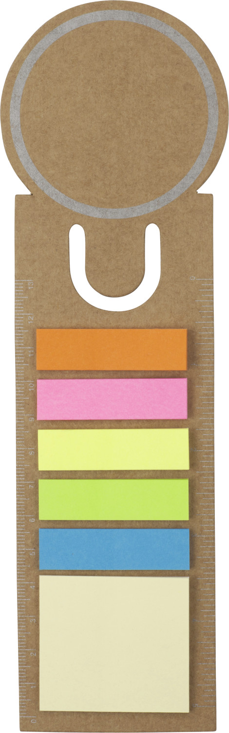 Lesezeichen aus Pappe, inklusive Haftnotizen (klein und groß) und Linealaufdruck.