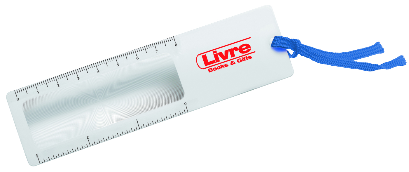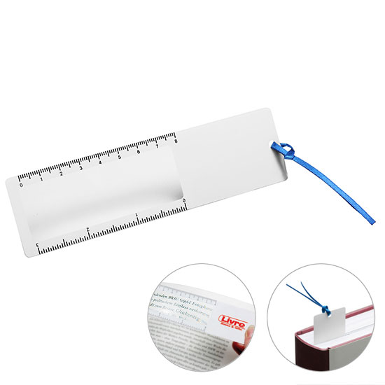 Lesezeichen mit Lupe 3-fach Vergrößerung, mit gedruckter Skala (8 cm und 3 inch)