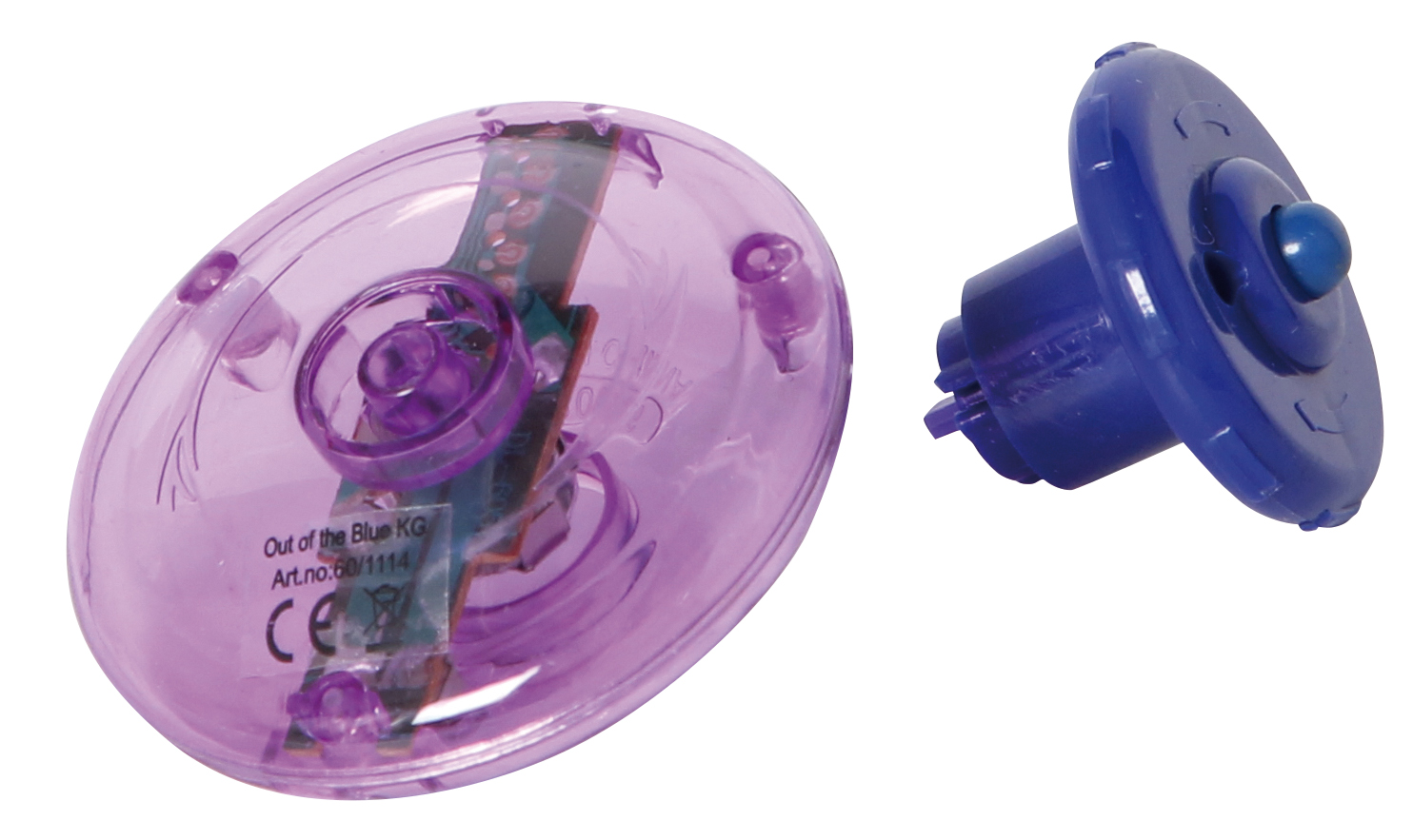 Kreiselaction mit Lichteffect! Und so geht's: den Griff aufstecken, das LED-Licht am Schalter einschalten, den Griff drehen und so den Kreisel aufziehen. Drückt man jetzt den Abschußknopf oben auf dem Griff, saust der Kreisel los und es zeigt sich ein bunten Fabenspiel! Sechs Farben sortiert. (Hinweise zur Batterieentsorgung liegen der Warensendung bei, oder vorab abzurufen, unter: http://1111ideen. de / content/25-Batterie-Hinweis)