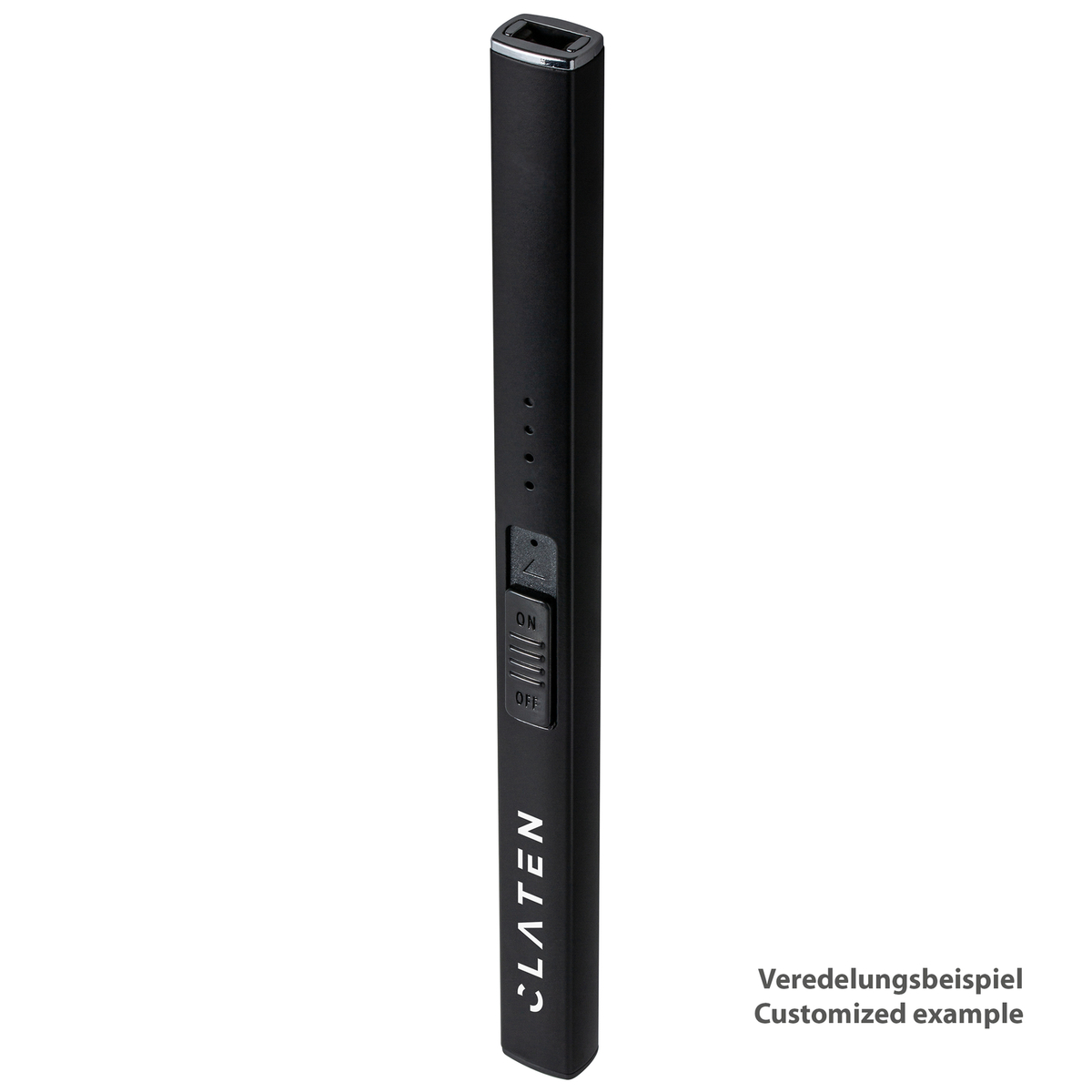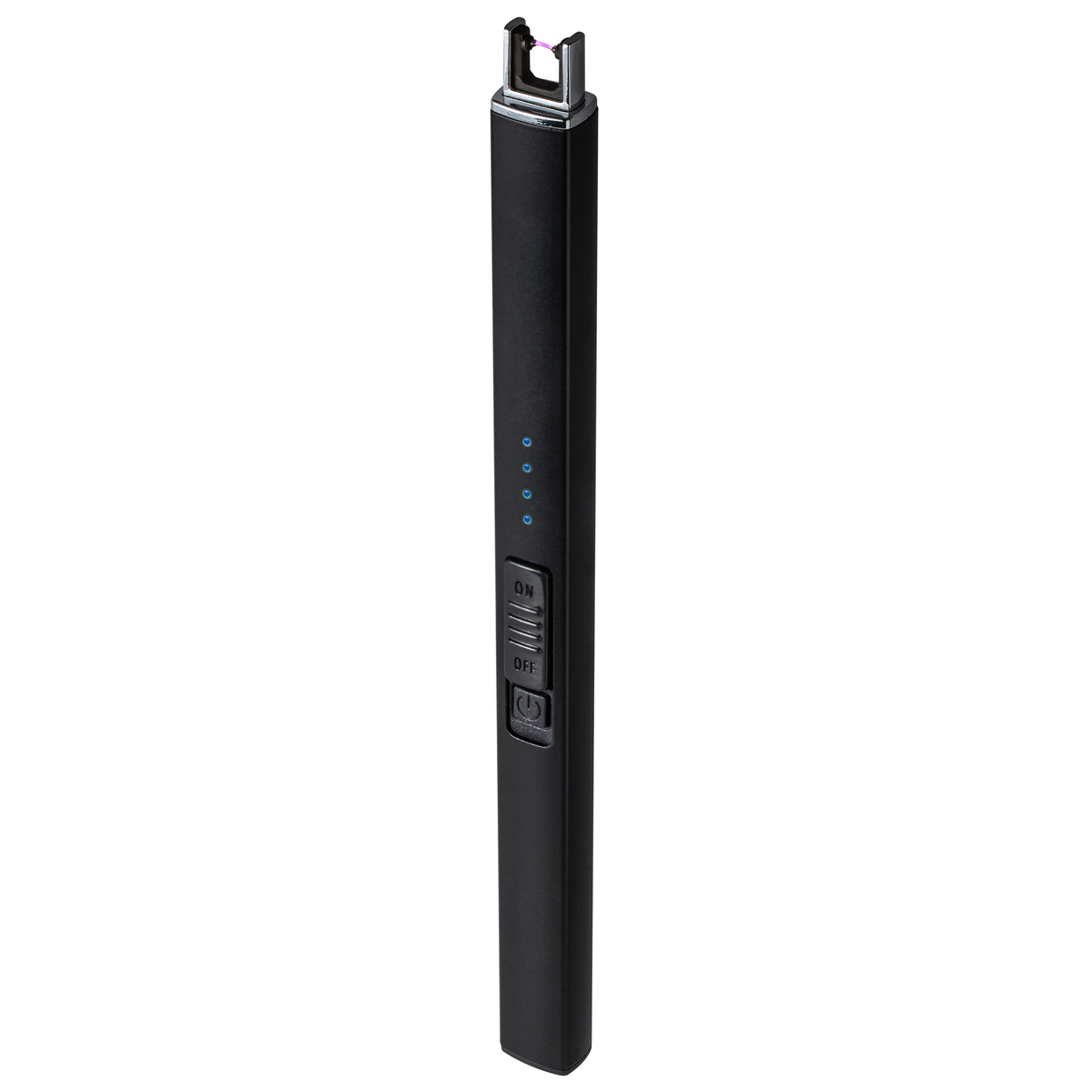 Elegantes Lichtbogen-Stabfeuerzeug mit Aluminiumgehäuse und blau leuchtender LED- Ladestandanzeige. Der Lichtbogenkopf lässt sich im Korpus versenken und dient gleichzeitig als Kindersicherung. Ebenso verfügt das Feuerzeug über eine automatische Schutzabschaltung nach 7 Sekunden. Der Akku ist wieder aufladbar über USB-C.