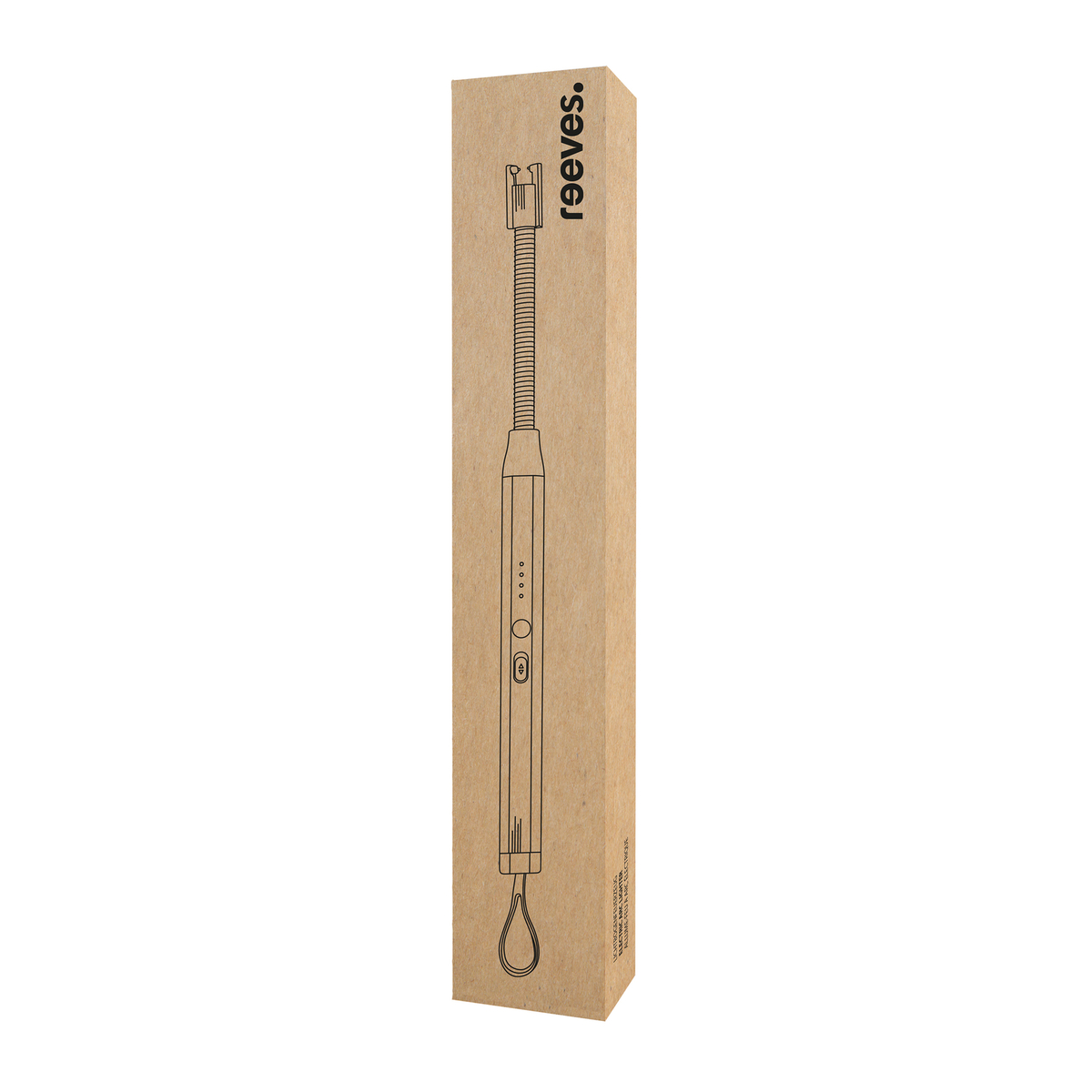 Elektrische Lichtbogenfeuerzeuge funktionieren mit eindrucksvoller Lichtbogentechnik. Das Lichtbogenfeuerzeug REEVES-Arcfire verfügt über eine blau leuchtende Ladestandsanzeige, eine blaue Betriebsanzeige und eine automatische Sicherheitsabschaltung nach 10 Sekunden. Als zusätzliche Schutzmaßnahme muss zuerst ein Aktivierungsschalter in die Position "On" gebracht und dann der Einschalter gedrückt werden, damit der Lichtbogen entzündet wird. Der flexible Hals erleichtert das Entzünden von Kerzen und Feuerwerkskörpern. Die Silikonschlaufe ermöglicht bequemes Aufhängen, z. B. zum sicheren Aufbewahren außerhalb der Reichweite der Kinder. Der Artikel ist über das mitgelieferte USB-A auf USB-C-Kabel wiederaufladbar. Im Produkt sind ein Überspannungsschutz, ein Kurzschlussschutz und ein Überhitzungsschutz integriert. Für eine wirkungsvolle Veredelung bieten wir Lasergravur und Tampondruck an. Das Produkt wird in einer hochwertigen Faltschachtel aus Pappe geliefert.