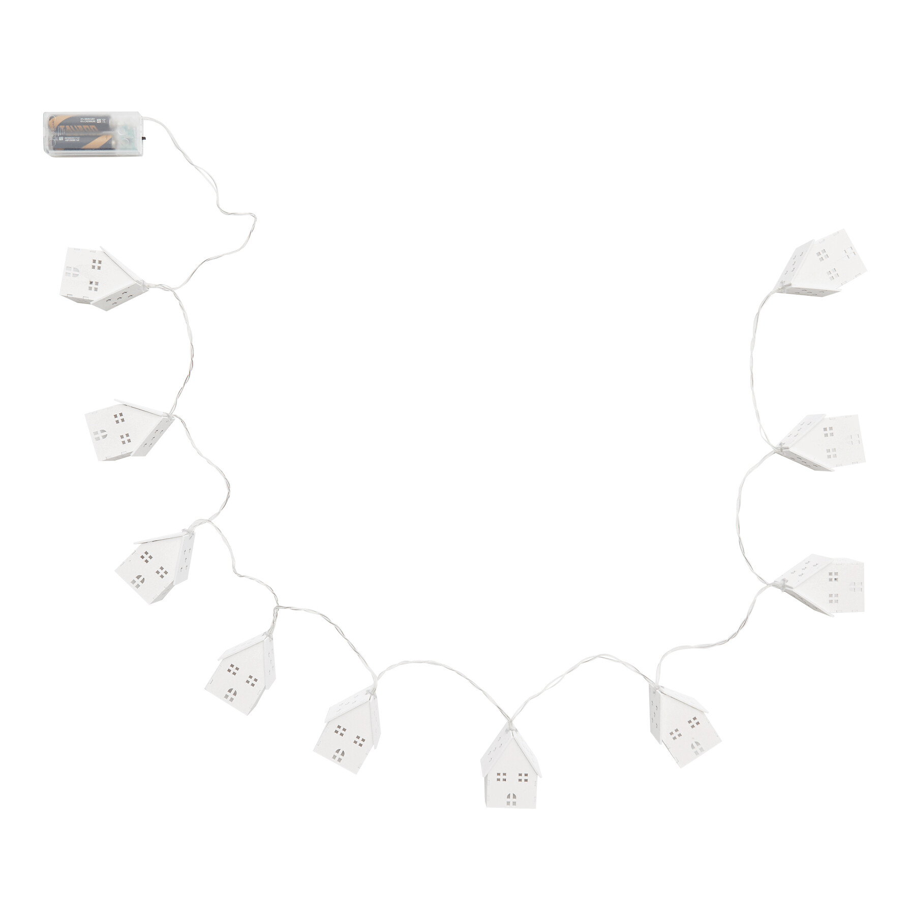 Lichterkette COSY LIGHTS: ca. 168 cm lang, jedes der 10 Holz-Häuschen wird mit einer warmweißen LED beleuchtet, Timerfunktion (6 Stunden an, 18 Stunden aus), batteriebetrieben (2x AA Batterien nicht enthalten), in Box