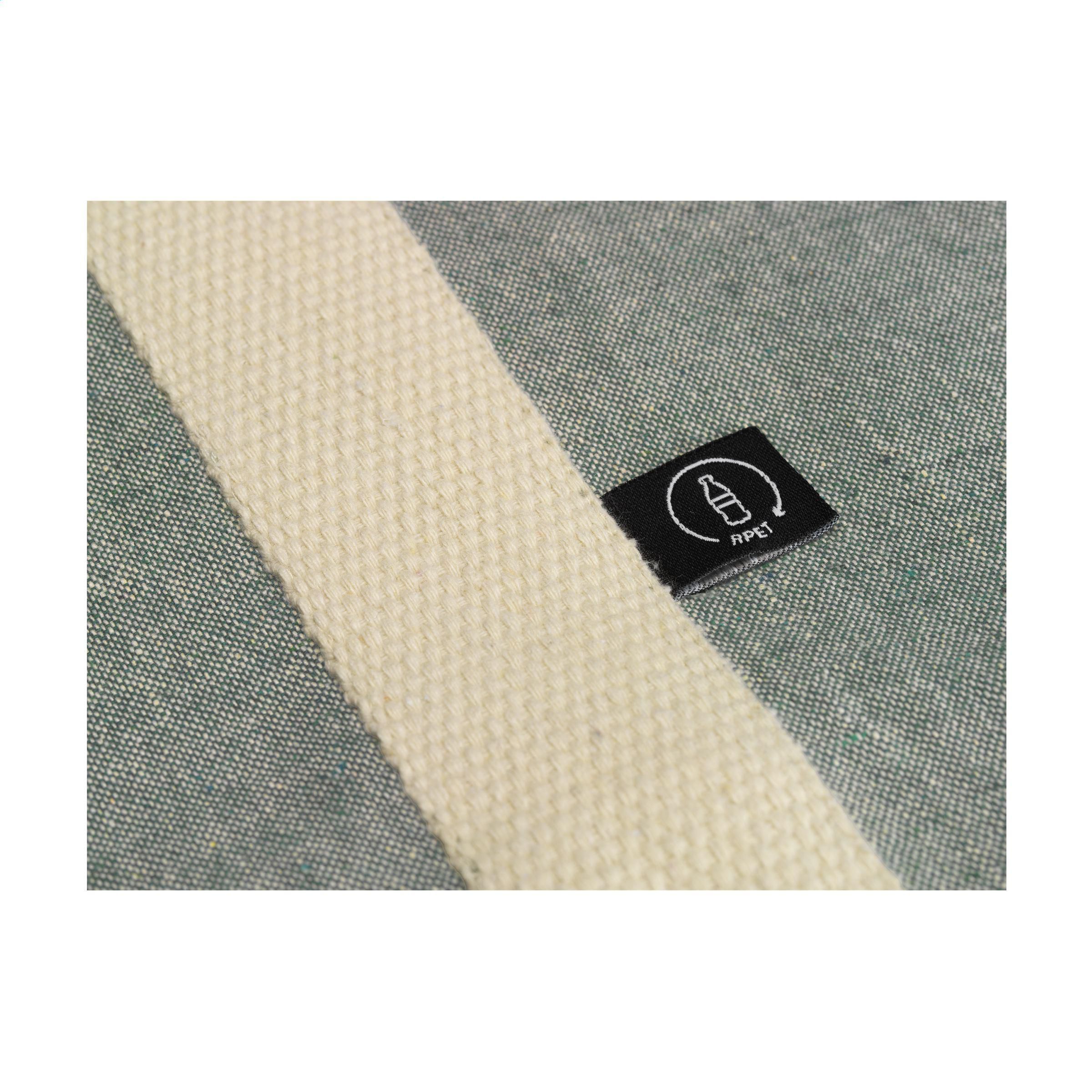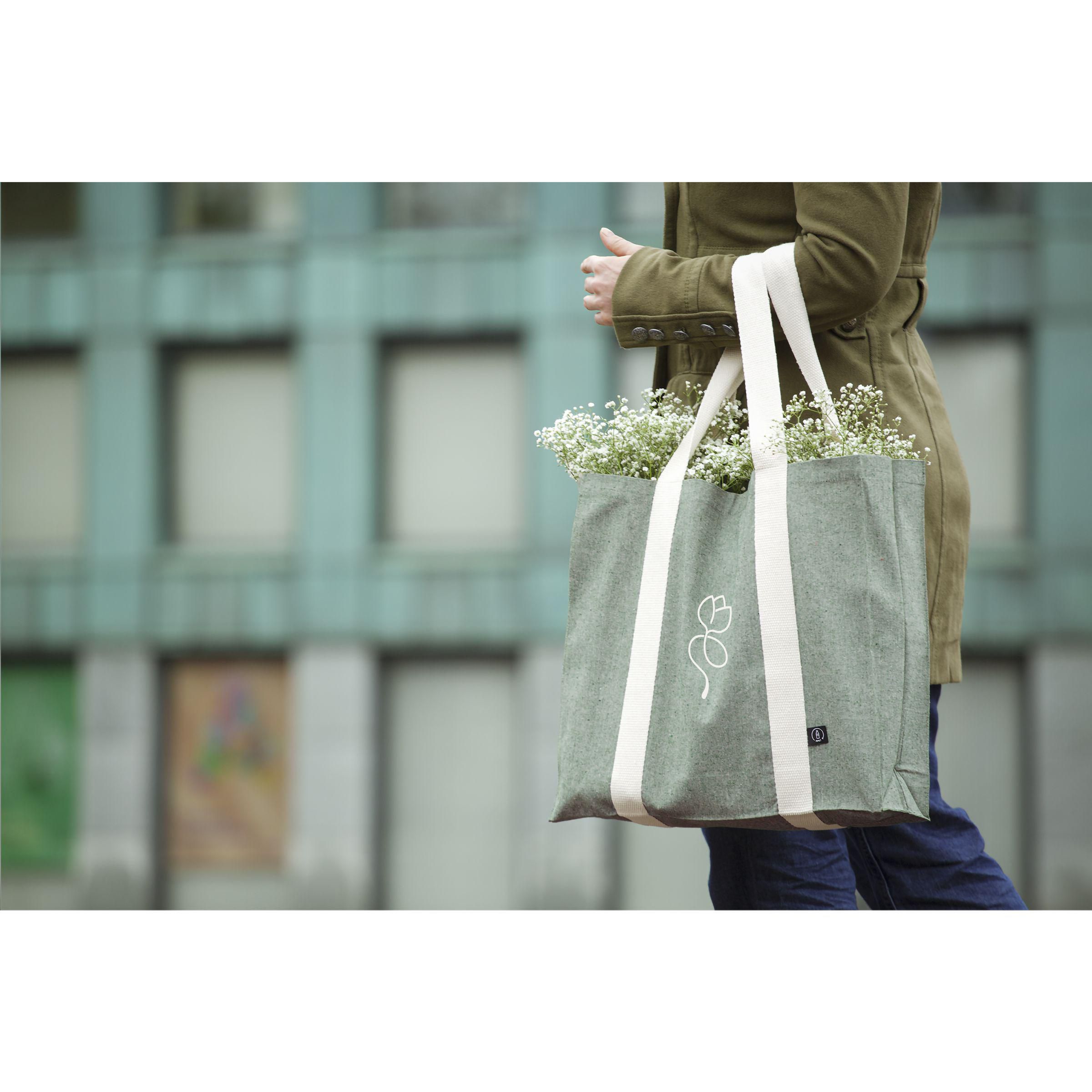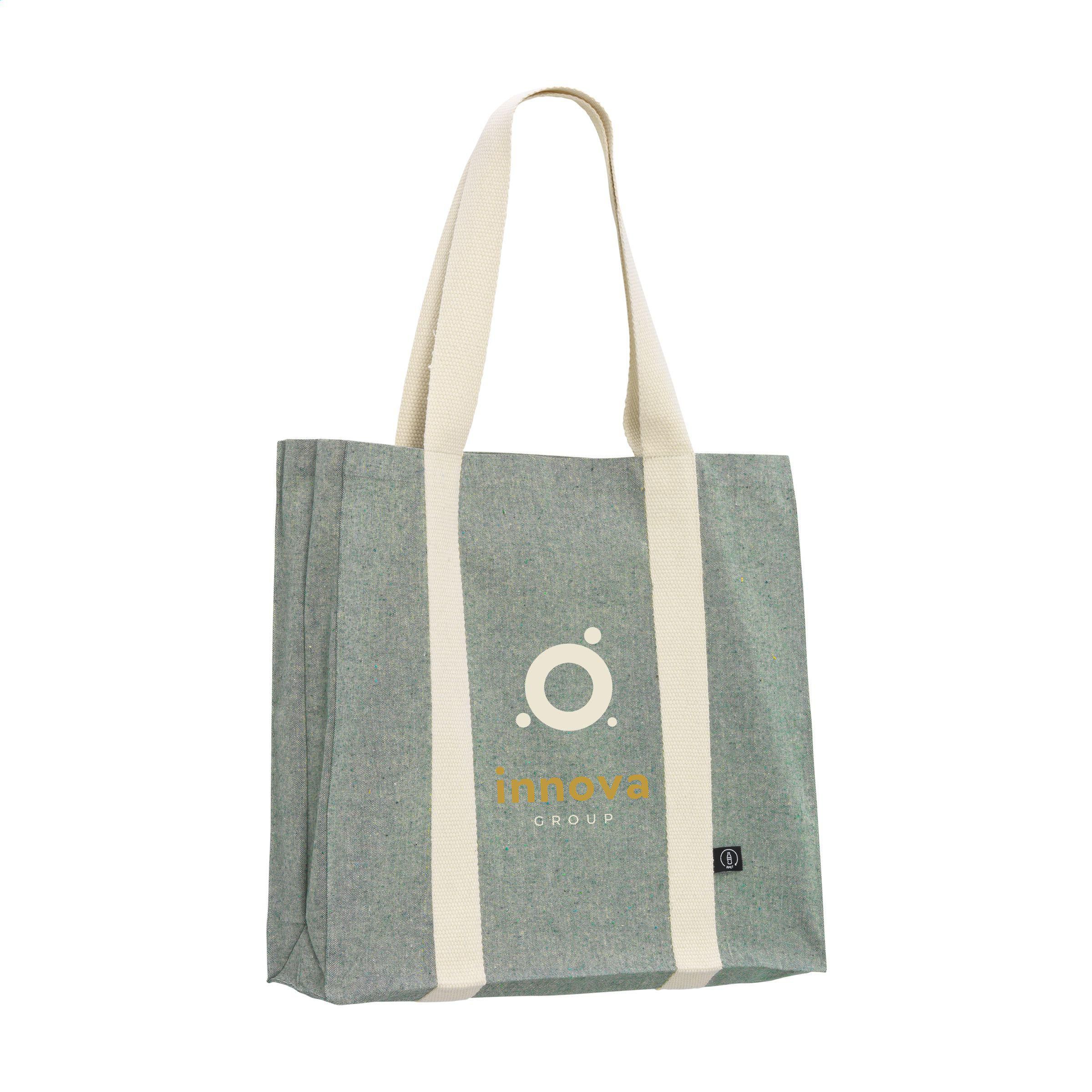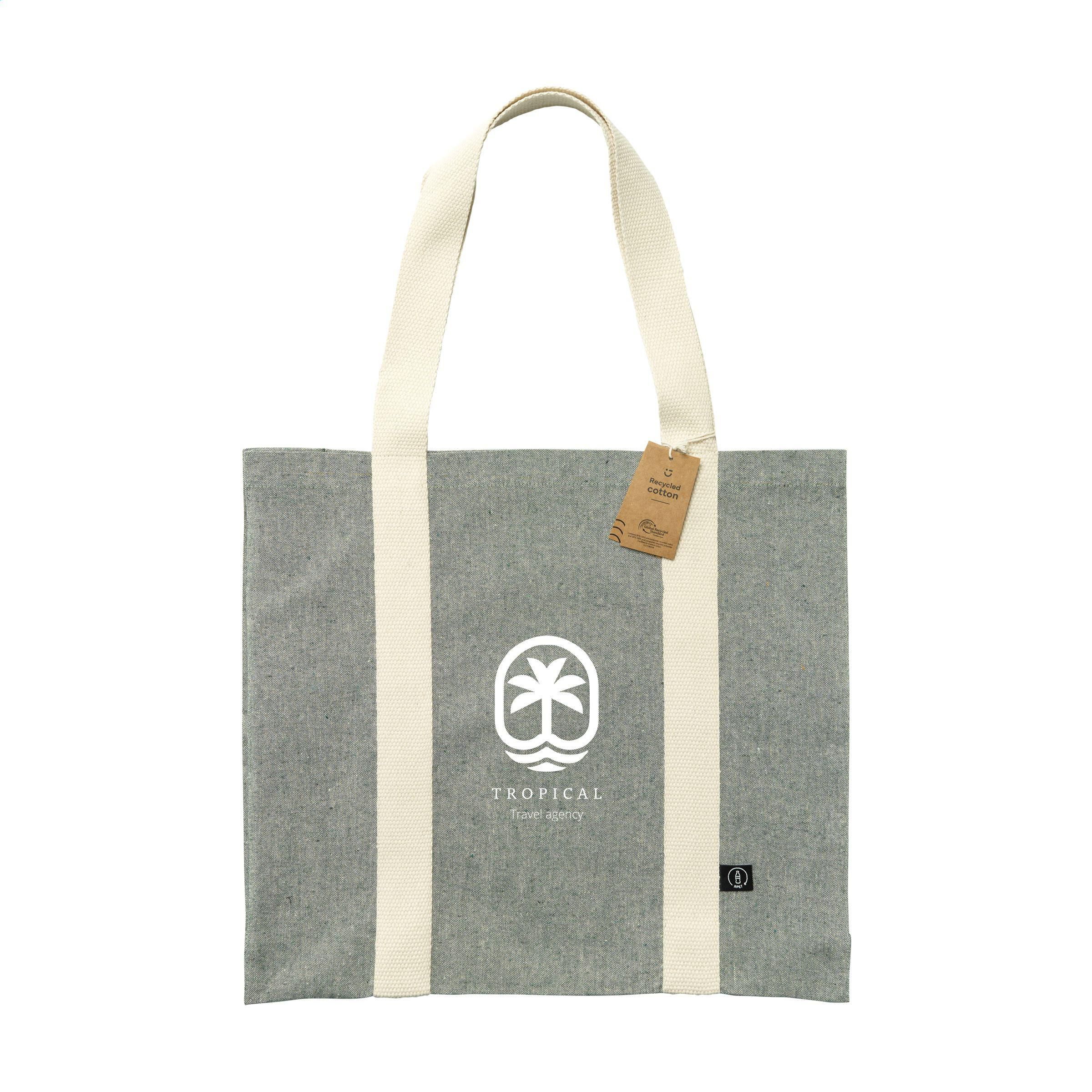 Geräumige, robuste Einkaufstasche aus 80% recyceltem, gemischtem Baumwolle und 20% recyceltem, gemischtem Polyester (210 g/m²). Mit dichtem, flachem Gewebe, langen Henkeln und breitem Boden. Die Henkel haben eine auffällige gewebte Struktur und verlaufen als robuste Bänder vertikal über die Tasche, ein schönes und dekoratives Detail. Die Tasche ist für den häufigen Gebrauch geeignet. GRS-zertifiziert. Fassungsvermögen ca. 18 Liter.