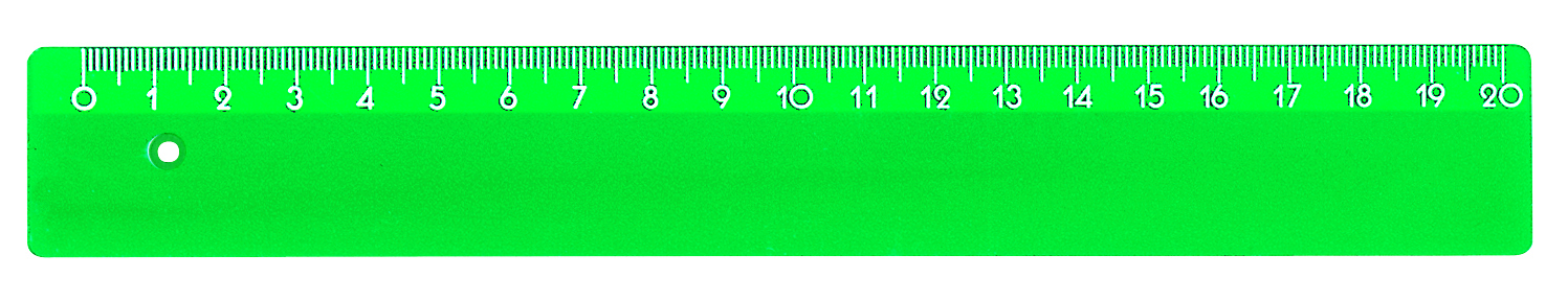 Lineal 20 cm mit gedruckter Skala auf schräg abfallender Fläche und Tuschkante
