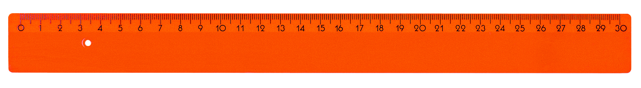 Lineal 30 cm mit gedruckter Skala auf schräg abfallender Fläche und Tuschkante