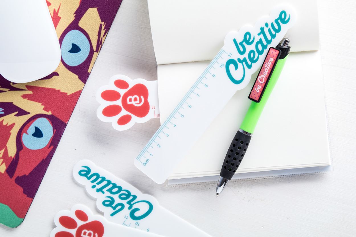 Lineal aus Kunststoff (11 cm) mit individueller Form an einem Ende (maximale Sonderform: 50 x 50 mm). Preis inkl. 1c Druck. Mindestmenge: 100 Stk.