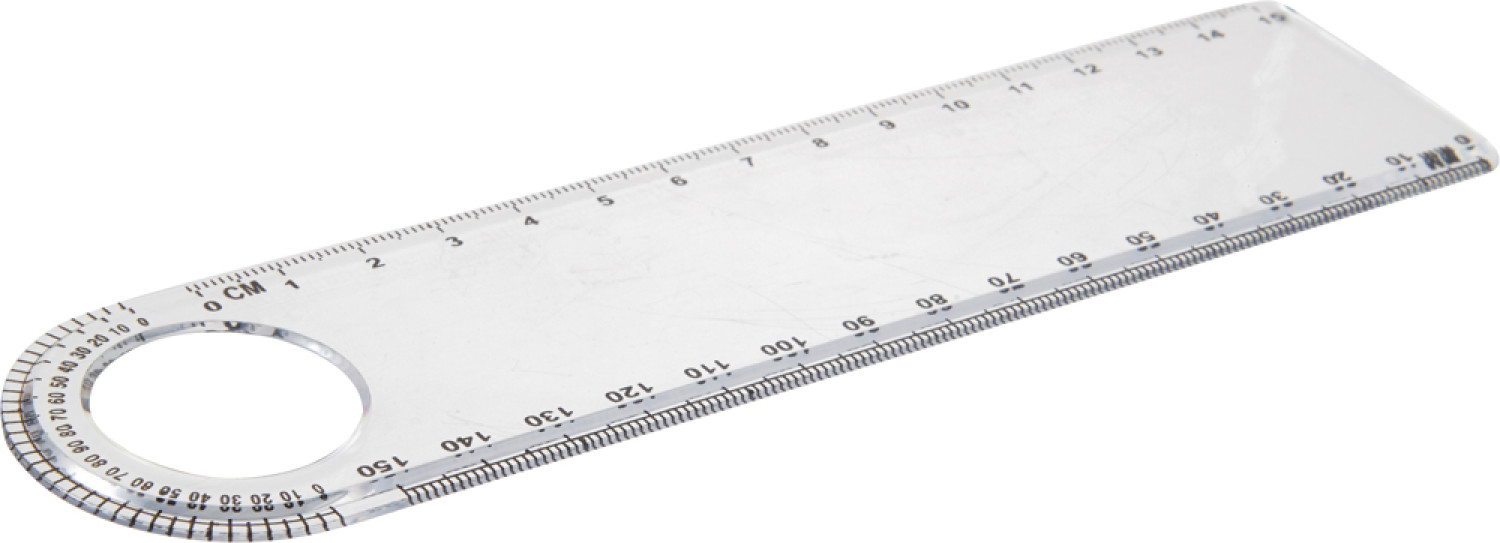 Lineal aus Kunststoff (2 x 15 cm) mit Lupe und Winkelmesser.