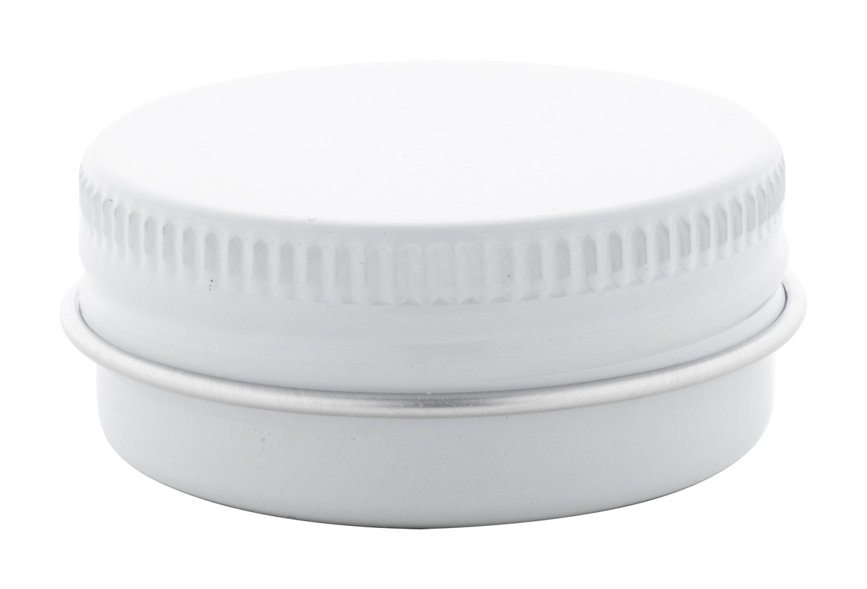 Vanille-Lippenbalsam in einer Dose mit Schraubverschluss aus recyceltem Aluminium, mit Lichtschutzfaktor 15. Das Produkt enthält keine Inhaltsstoffe tierischen Ursprungs.
