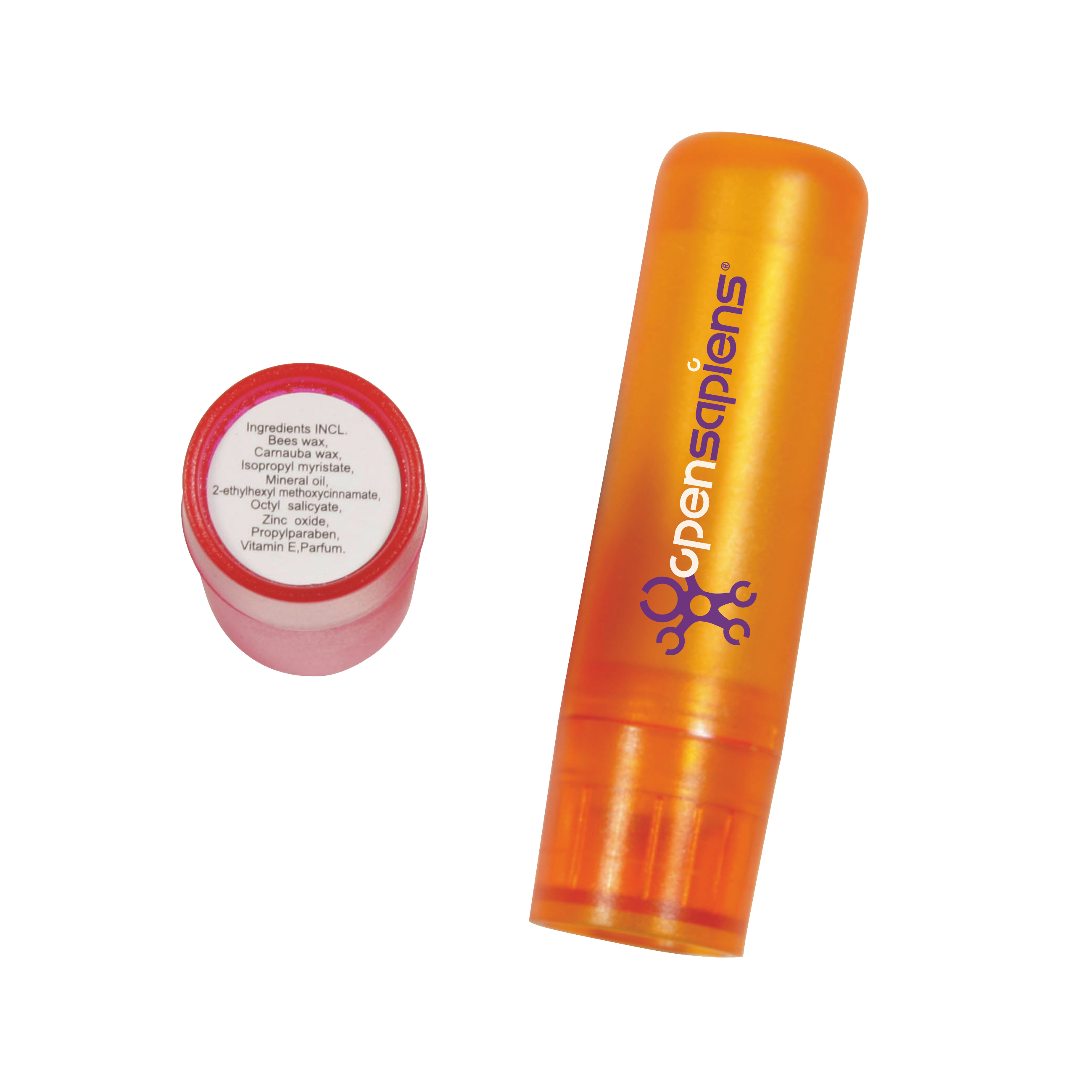 Lippenbalsam Stick mit Zutatenaufkleber.