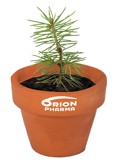 Das Terracotta Töpfchen wird mit Fichtensamen und einer Substrattablette als Erde geliefert. Das Unternehmen wirbt durch den Druck des Logos direkt auf dem Topf und zusätzlich mit einer individuellen Gestaltung auf der Überreichverpackung.