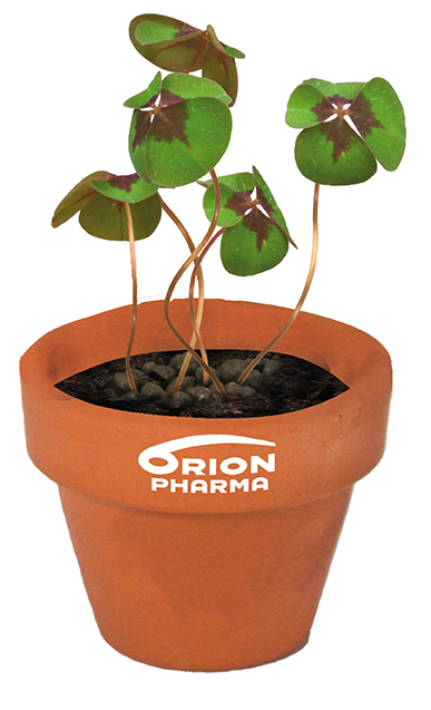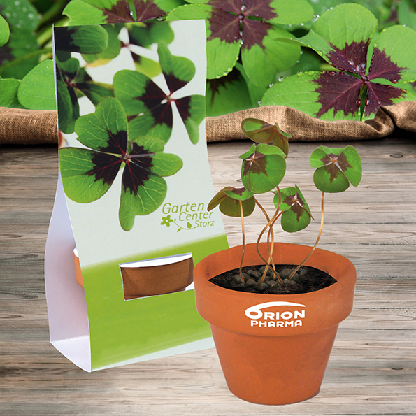 Das Terracotta Töpfchen wird mit Fichtensamen und einer Substrattablette als Erde geliefert. Das Unternehmen wirbt durch den Druck des Logos direkt auf dem Topf und zusätzlich mit einer individuellen Gestaltung auf der Überreichverpackung.