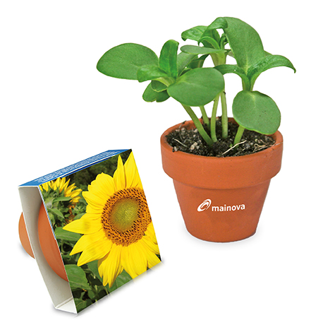 Der Logo-Topf mit Substrattablette und Pflanzensamen in Terracotta "natur", macht besonders hochwertig und stilvoll auf die Werbebotschaft aufmerksam. Verschiedene Samensorten in großer Auswahl sind als Inhalt im Topf lieferbar. Die Individualisierung erfolgt 4-c auf dem Karton sowie auf dem Rand oder der Seite des Töpfchens in 1-c.