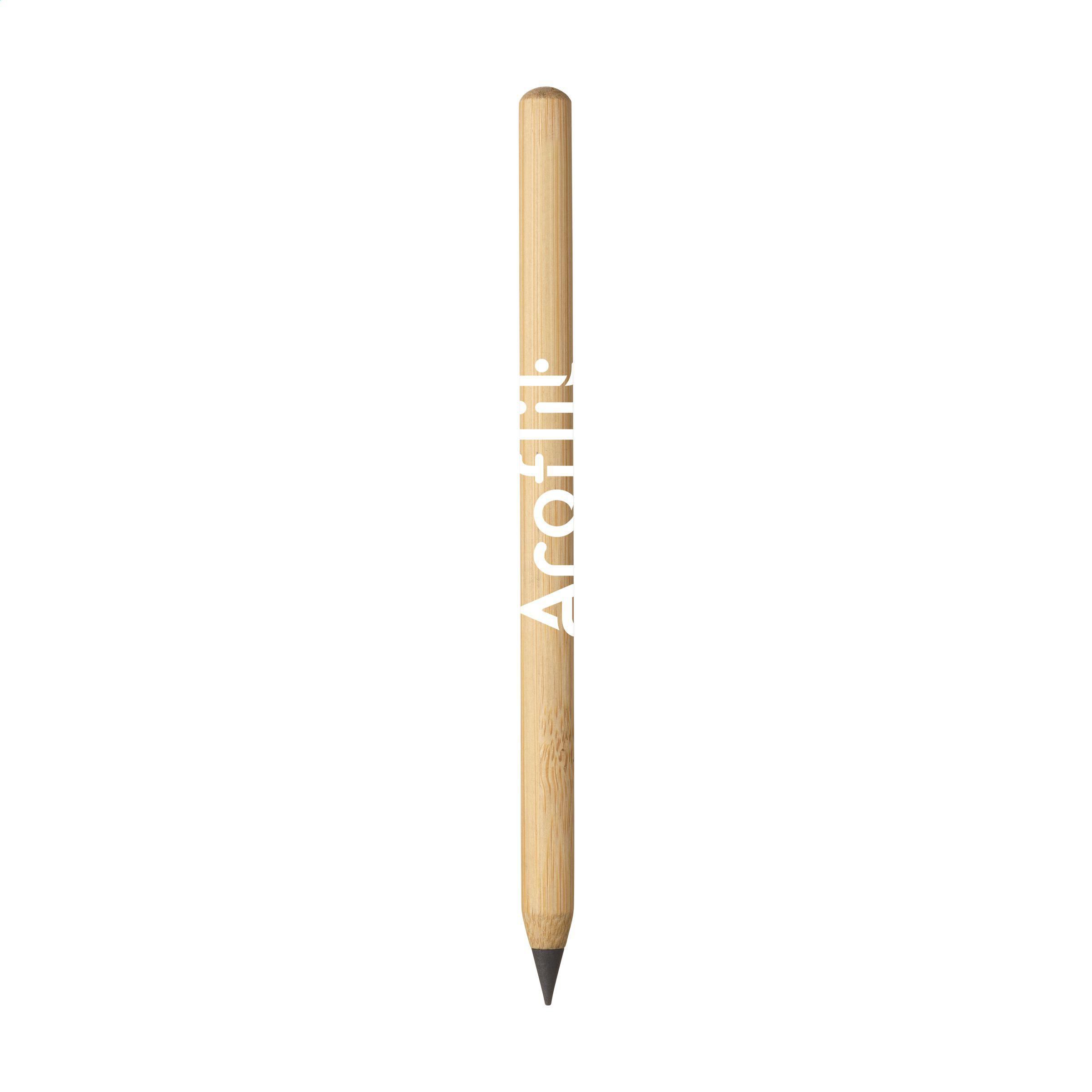 Bambus-Bleistift, der den traditionellen Bleistift ersetzt. Dieser Bleistift hat eine Graphitspitze mit einer Schreiblänge von bis zu ca. 20.000 Metern. Er schreibt wie ein herkömmlicher Bleistift und kann ausradiert werden. Die Spitze muss nicht angespitzt werden und nutzt sich sehr langsam ab. Dadurch hält der Stift bis zu 100 Mal länger als ein herkömmlicher Bleistift.