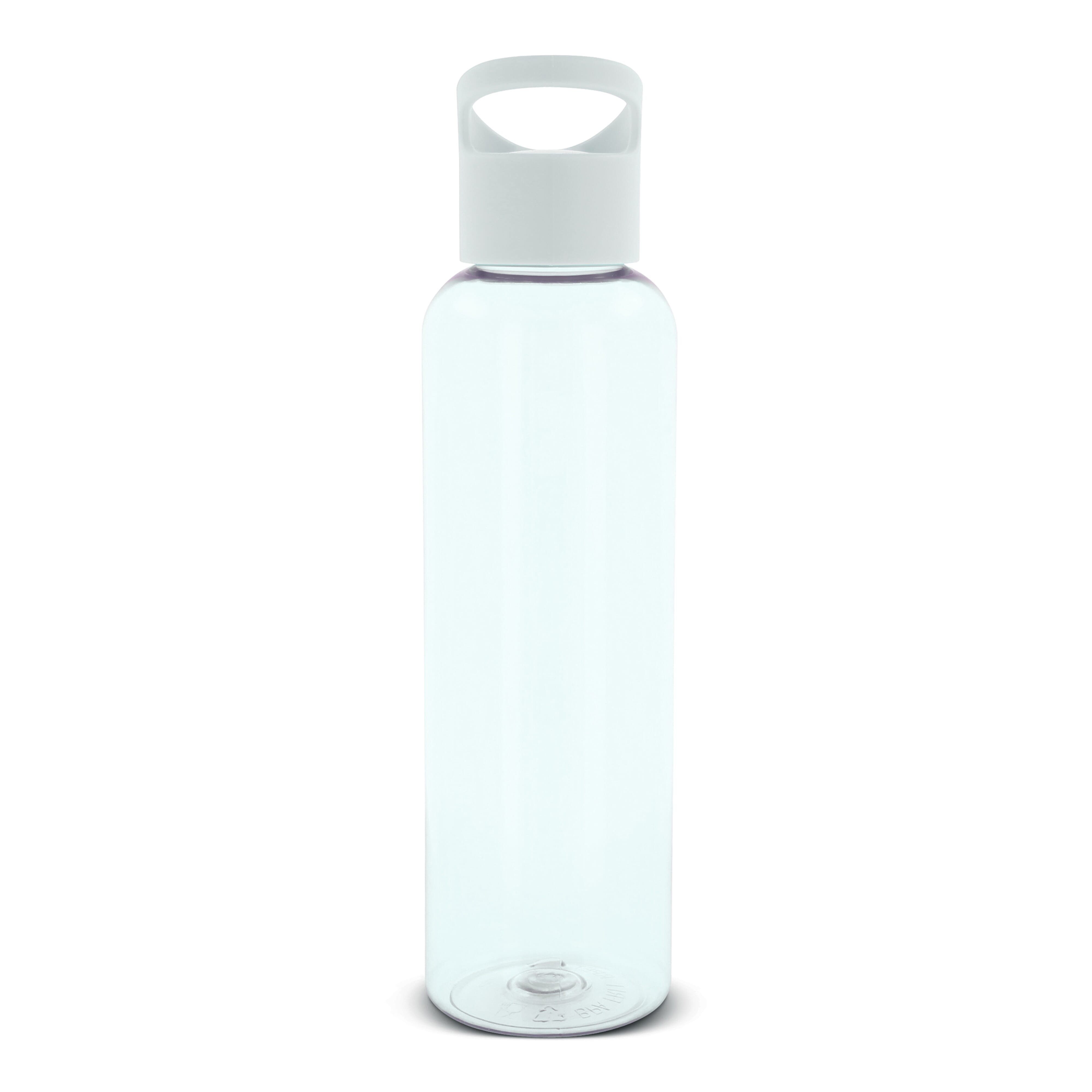 Einwandige Trinkflasche hergestellt aus R-PET. Nur für kalte nicht-kohlensäurehaltige Getränke geeignet.