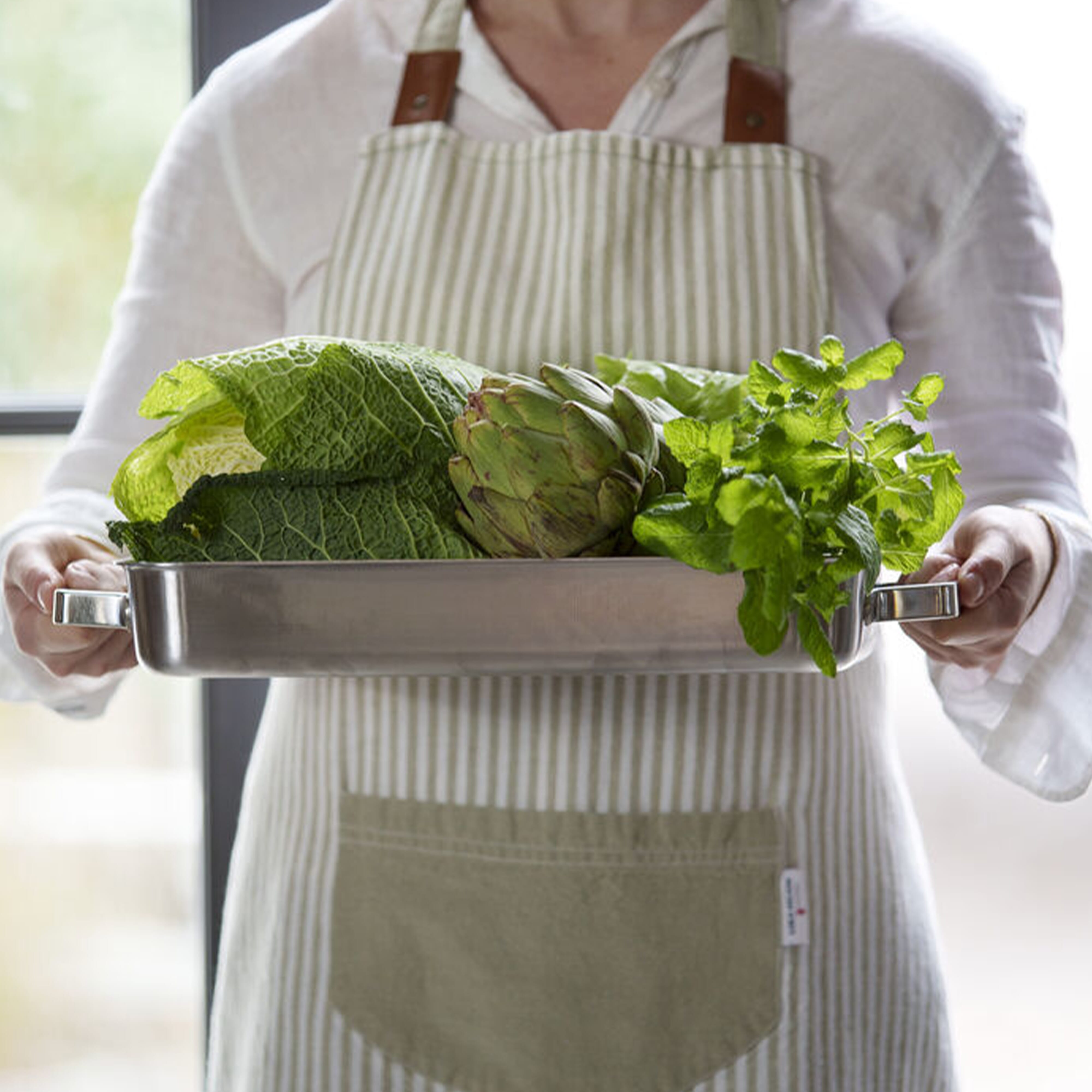 Diese Schürze aus der Victory-Serie von Lord Nelson vereint schwedisches Design, Schlichtheit und hochwertige Materialien. Sie besteht aus Baumwolle und Leinen und verfügt über eine praktische Fronttasche sowie verstellbare Bänder an Taille und Hals. Stilvolle Details in PU-Lederoptik runden das elegante Erscheinungsbild ab.