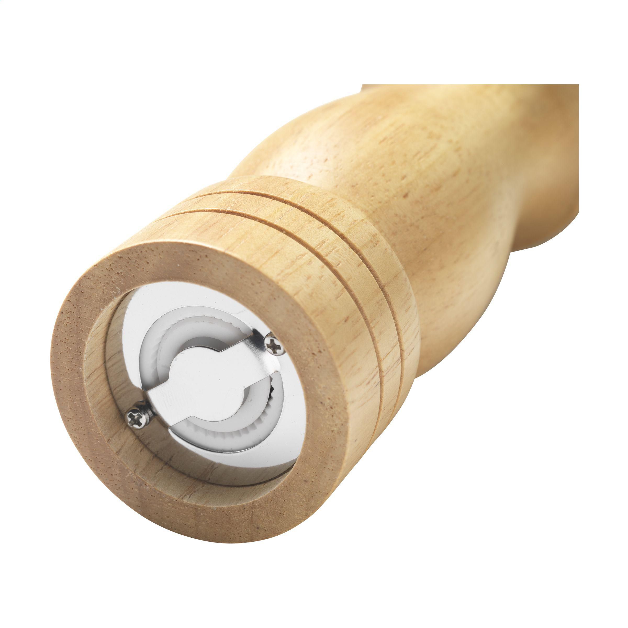 Set bestehend aus einer Pfeffermühle und einer Salzmühle aus Gummibaum-Holz. Dieses klassische Modell ist nach wie vor äußerst beliebt. Die Mahlscheiben der Mühlen sind aus Keramik gefertigt. Dadurch sind die Mühlen leistungsstark genug, um grobe Körner zu mahlen. Einfach nachzufüllen.