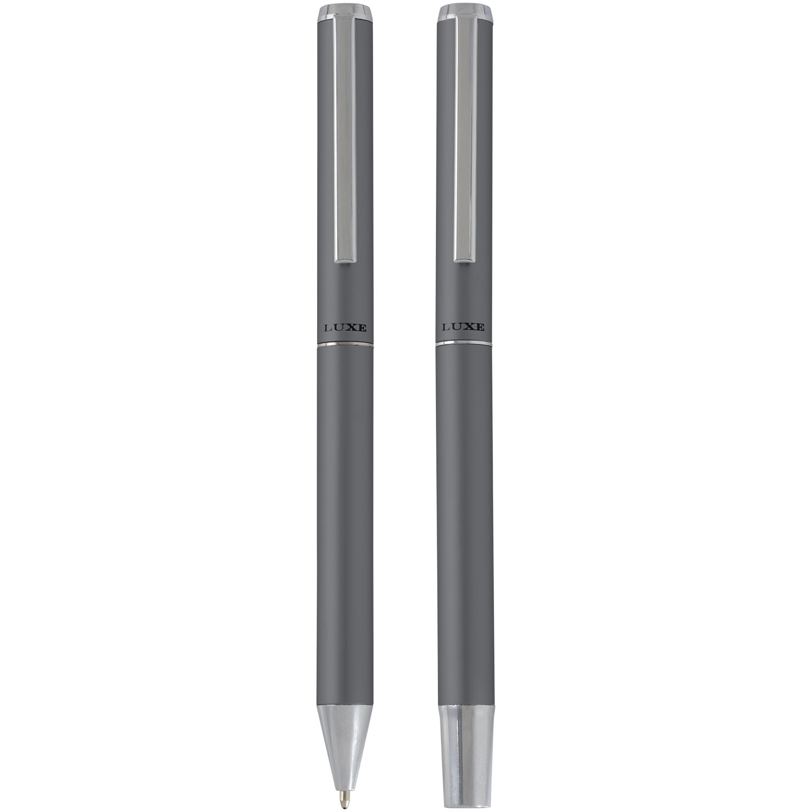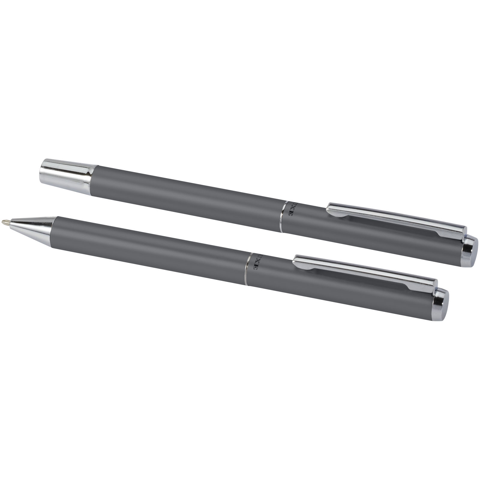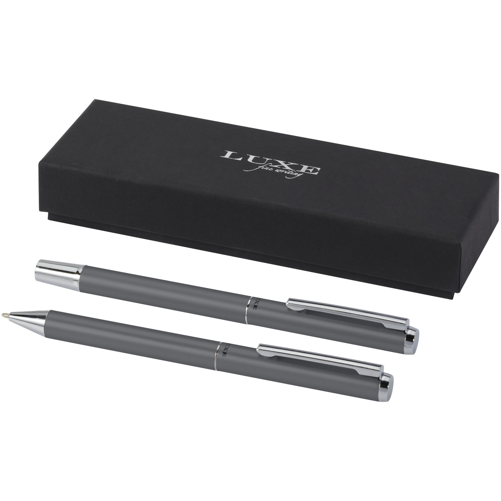 Die Gehäuse dieses Kugelschreiber- und Tintenroller-Sets bestehen aus matt eloxiertem, recyceltem Aluminium mit glänzend verchromtem Details. Aluminium ist ein sehr gut recycelbares Material. Mit der Wahl dieses Schreibsets unterstützen Sie nachhaltige Praktiken und geben ausrangierten Aluminiummaterialien ein neues Leben. Diese Stifte sind eine praktische und nachhaltige Option für Personen und Organisationen, die auf der Suche nach umweltfreundlichen Schreibgeräten sind. Tintenfarbe des Stifts: Schwarz. Spitzengröße: 1,0 mm. Schreiblänge: 800 Meter. Lieferung in schwarzer Präsentbox mit schwarzem Seidenband. Box Größe: 16,2 x 5,1 x 2,7 cm.