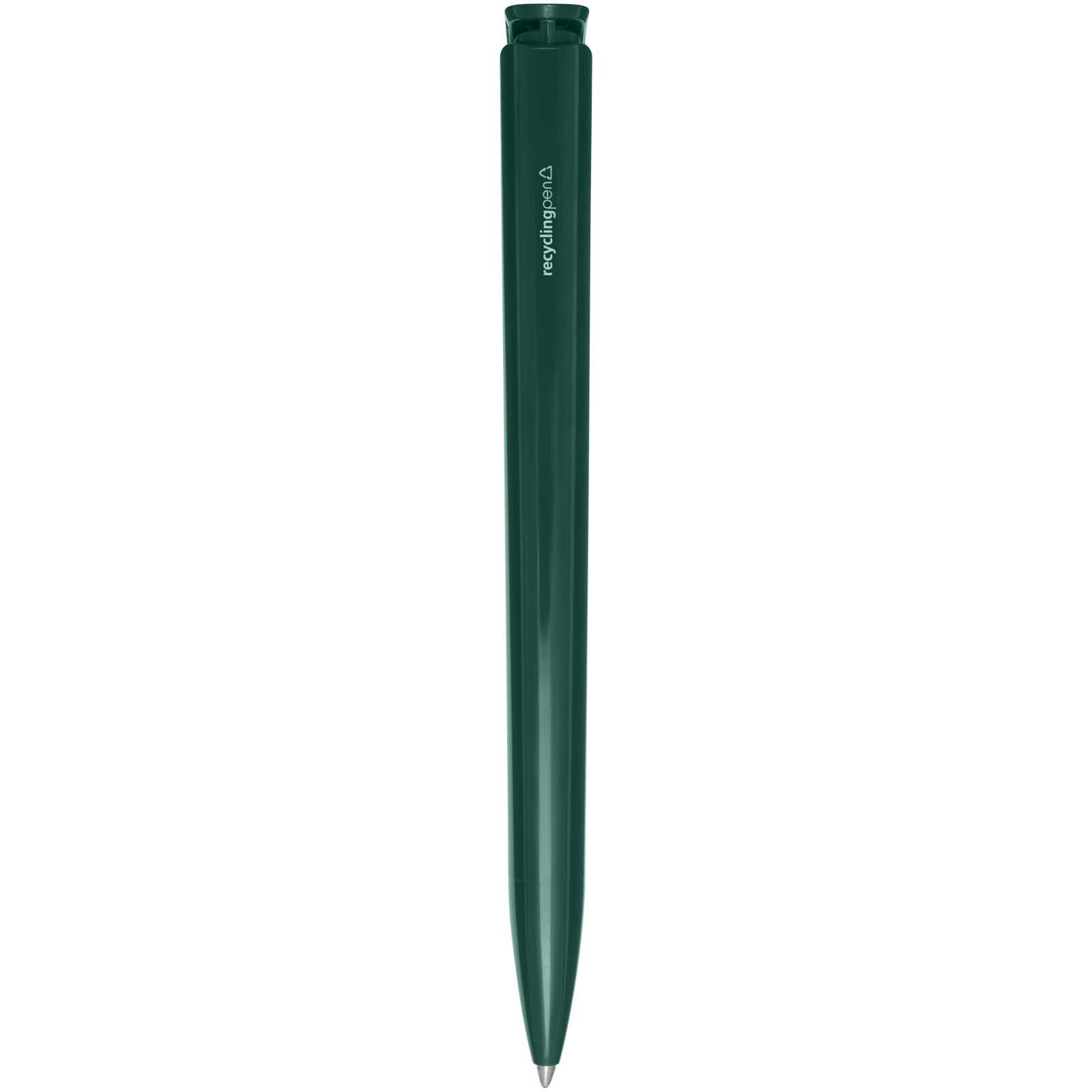 Kugelschreiber mit Schaft, Clip und Spitze aus recyceltem Kunststoff. Tintenfarbe: Blau. Schreiblänge: 3000 Meter. Strichstärke: 1,00 mm. Hergestellt in Deutschland.