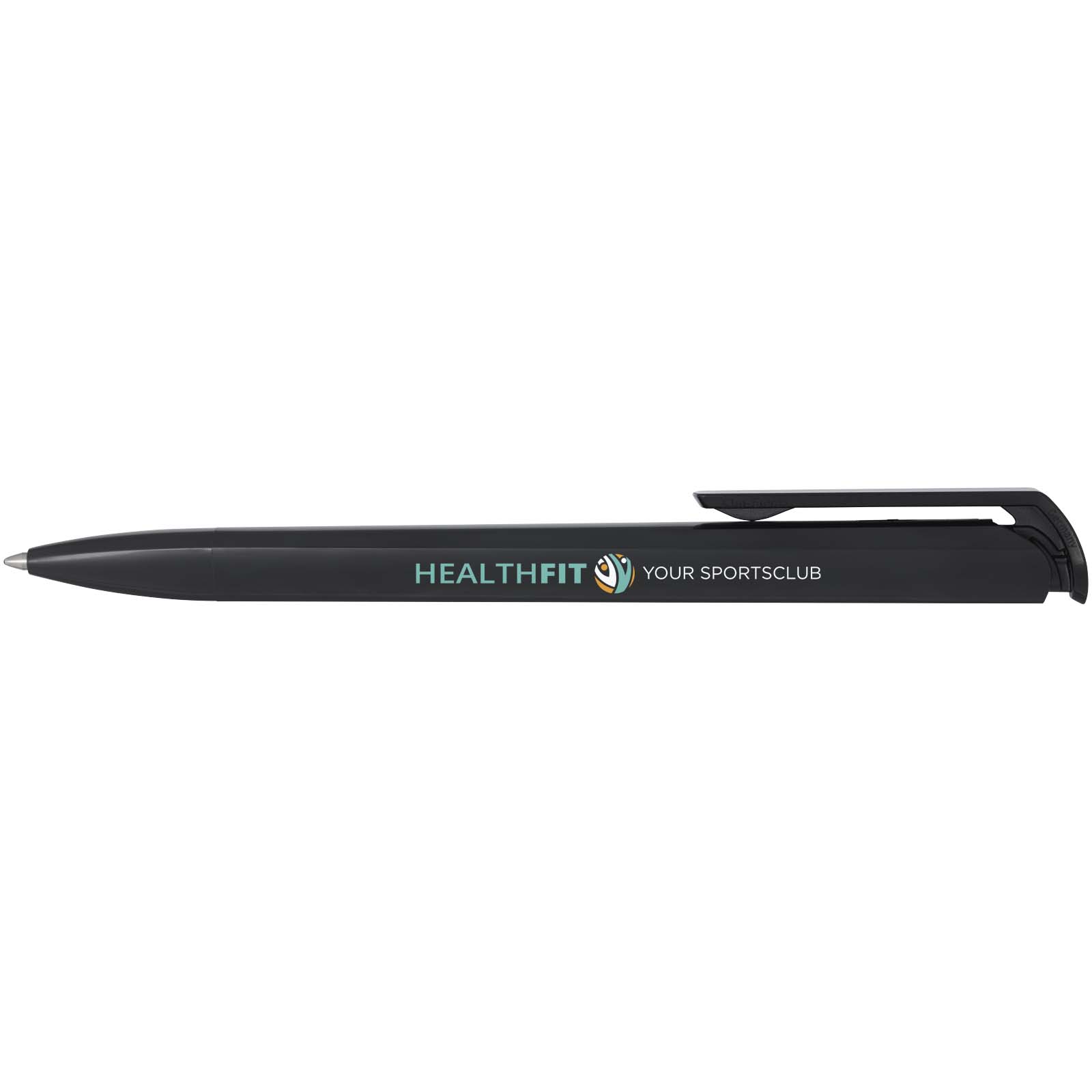 Kugelschreiber mit Schaft, Clip und Spitze aus recyceltem Kunststoff. Tintenfarbe: Schwarz. Schreiblänge: 3000 Meter. Strichstärke: 1,00 mm. Hergestellt in Deutschland.