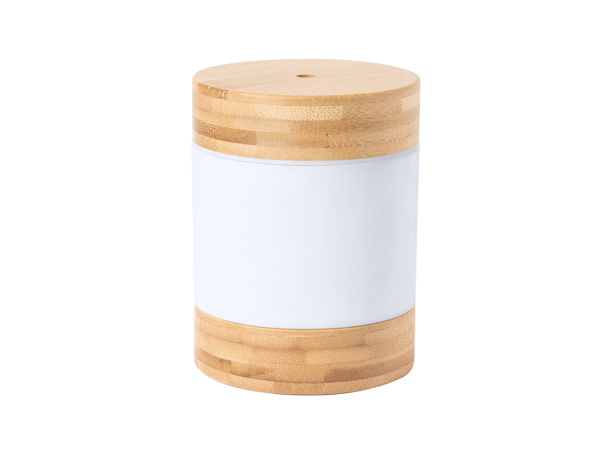 Tisch-Luftbefeuchter aus Bambus mit LED-Beleuchtung. Inkl. USB-Netzkabel. Füllmenge: 250 ml. Einzeln in Pappschachtel.