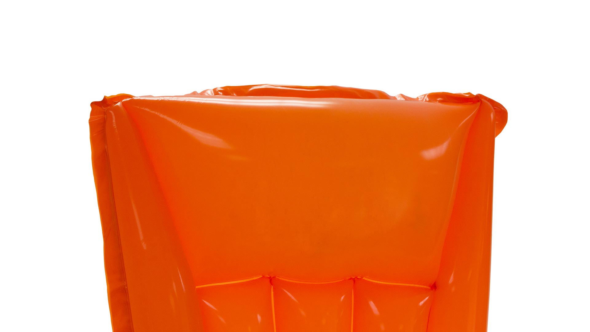 Aufblasbare Matratze von 180 cm Länge aus robustem PVC in lebendigen Farben. Präsentiert mit spezieller Faltung für einfaches Bedrucken.