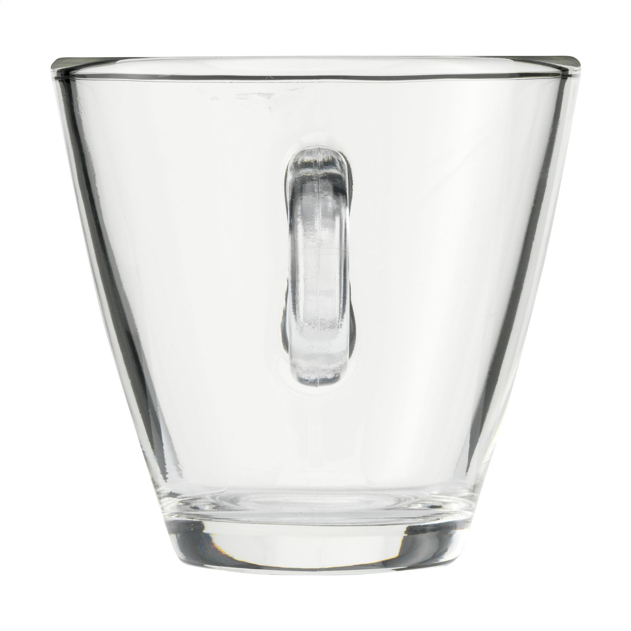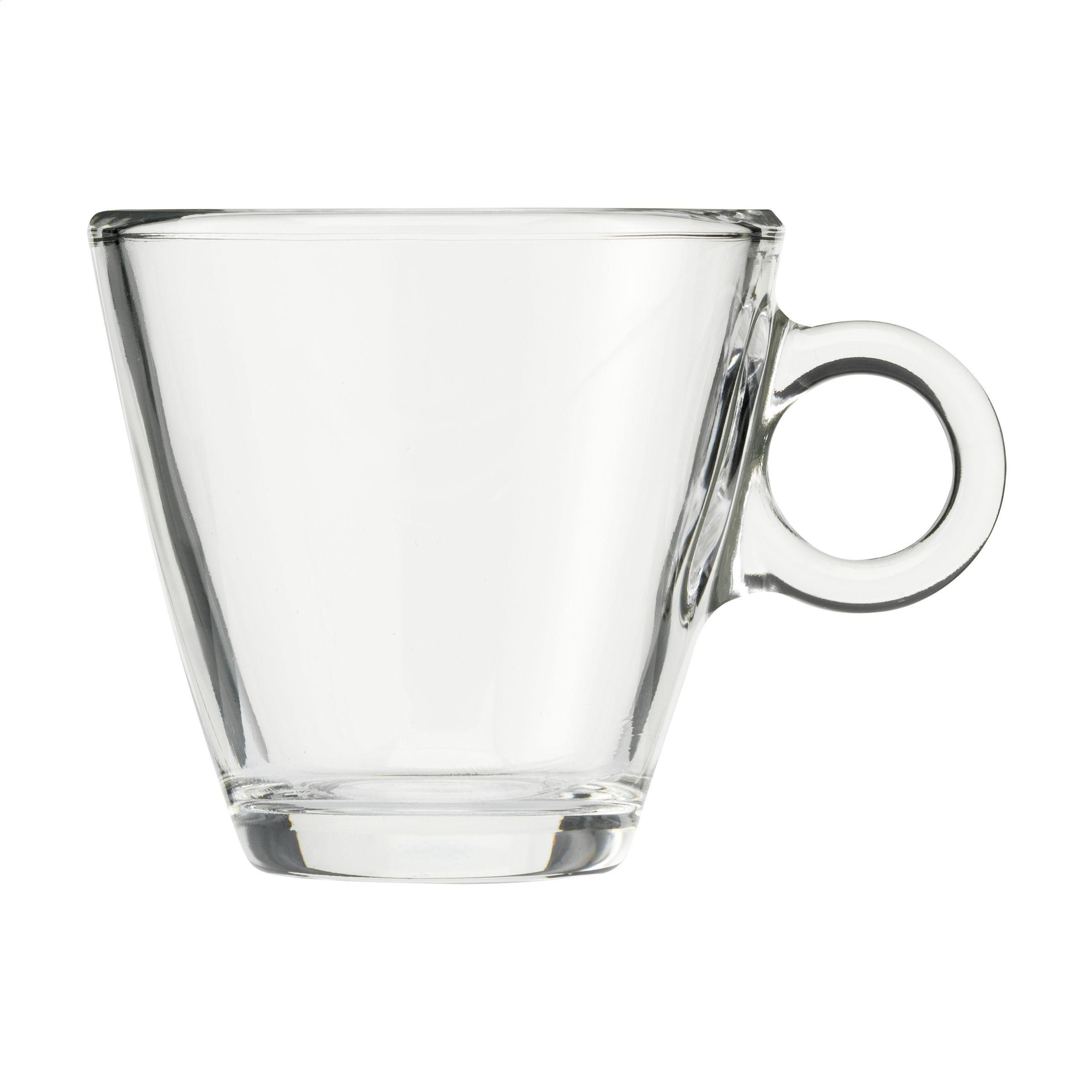 Kaffeeglas aus hochwertigem, gehärtetem Glas. Zeitloses Modell mit einem auffälligen runden Ohr. Geeignet für Kaffee und Cappuccino. Fassungsvermögen 230 ml. Hergestellt in Italien.