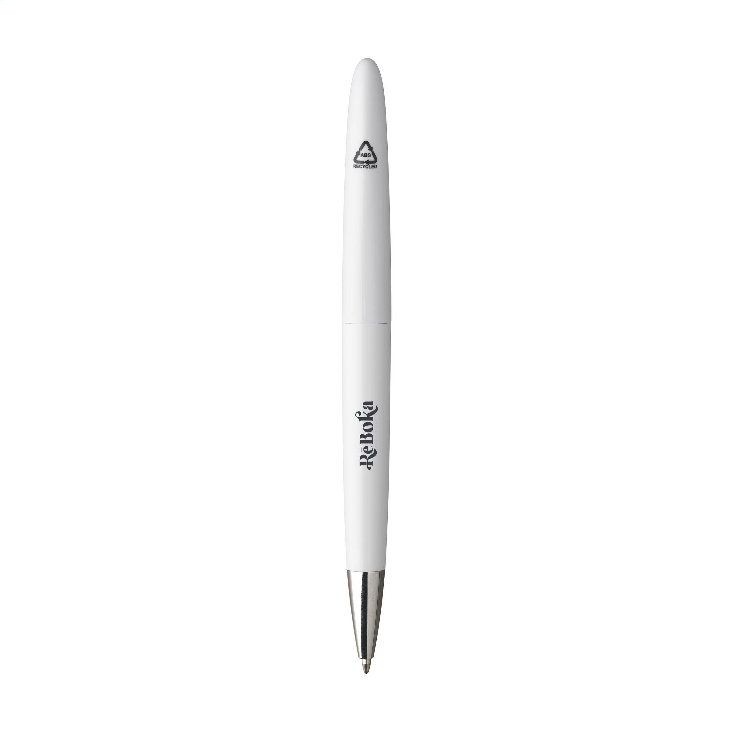 Beschreibung: Blauschreibender Kugelschreiber. Das Gehäuse besteht zu 100% aus recyceltem ABS. Mit formschöne Clip und Dreh-Klicksystem. GRS-zertifiziert.