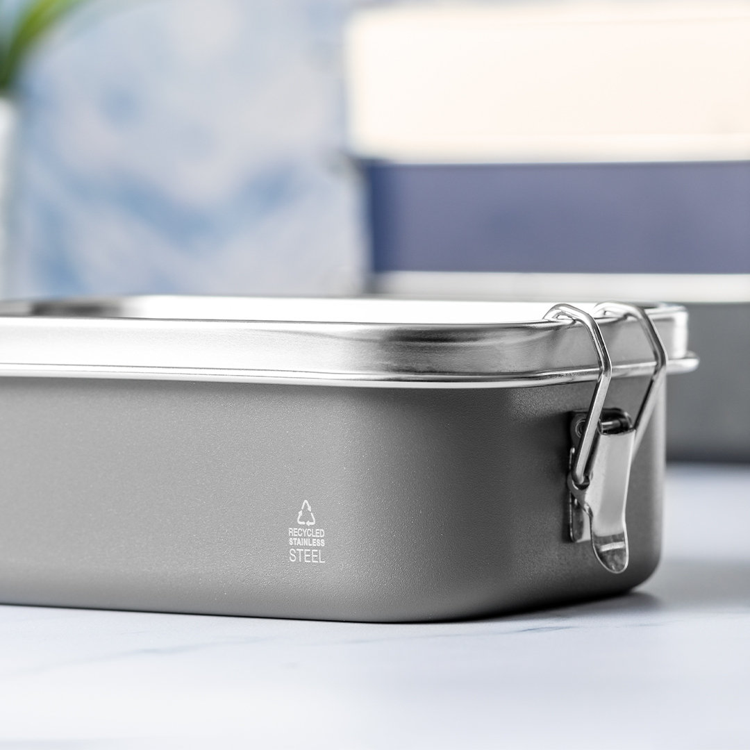 Lunchbox mit 750 ml Fassungsvermögen, hergestellt aus recyceltem Edelstahl. Luftdichter Deckel mit Sicherheitsverschlüssen und dem Logo von recyceltem Edelstahl. Erhältlich in einer breiten Farbpalette und präsentiert in einer individuellen Box mit Kraftdesign. Stahl ist einer der gefragtesten Werkstoffe und findet sich fast überall, von Alltagsprodukten bis hin zu großen Bauwerken. Mit seinen unzähligen Eigenschaften, darunter Langlebigkeit und ein hohes Maß an Wiederverwendbarkeit, ist er eine geschätzte Alternative für nachhaltige Lösungen. Wenn er richtig behandelt wird, können neue Ressourcen mit unbegrenzter Nutzungsdauer gewonnen werden. Dieses Produkt ist nicht spülmaschinengeeignet