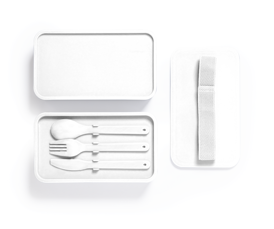 Lunchbox mit 1,4 Liter Fassungsvermögen, hergestellt aus BPA-freiem PP. Zwei Fächer mit einem Fassungsvermögen von je 700 ml. Innenfächer mit Gabel, Löffel, Messer und Unterteilungen. Erhältlich in einer Vielzahl von Farben, mit passendem elastischem Sicherheitsband. Food Grade-Zertifizierung, die die Sicherheit garantiert, wenn Lebensmittel mit dem für die Herstellung des Produkts verwendeten Material in Berührung kommen.