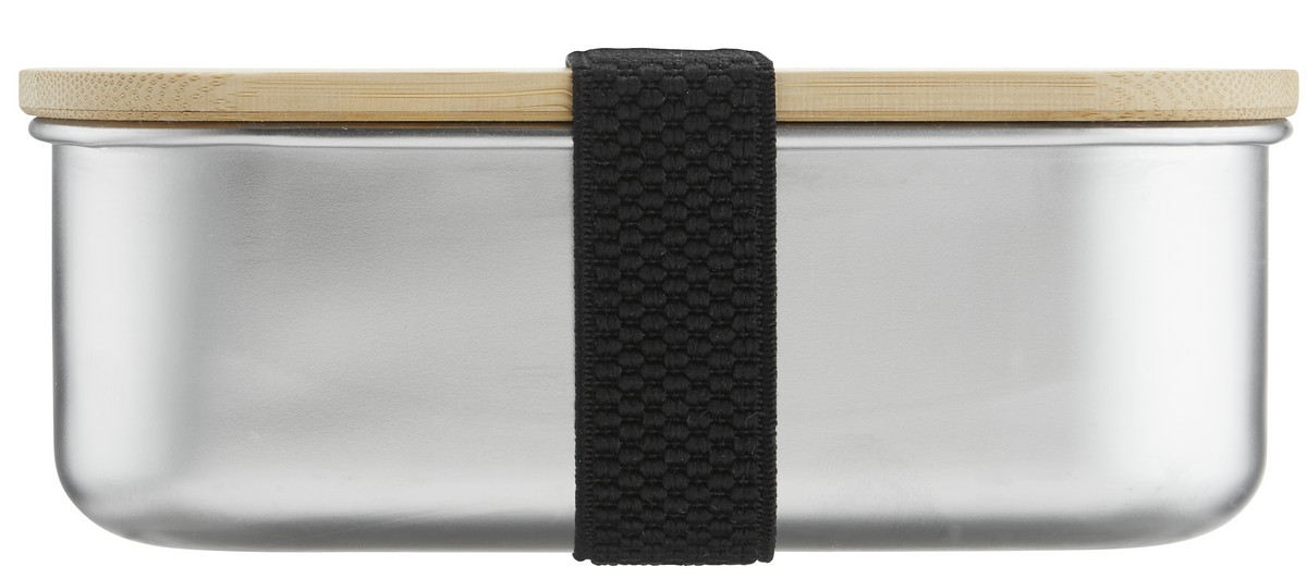 Gutes Design zeichnet sich durch pure Materialien, Langlebigkeit, unaufdringliche Gestaltung und nötigenfalls komplette Recycling-Fähigkeit aus. Diese ökologische, wirklich nachhaltige Lunchbox vereint alle Merkmale in sich. Die Brotdose ist gefertigt aus robustem Edelstahl und Bambus und wird Ihnen ein treuer Begleiter für das nächste Frühstück, Vesper oder die deftige Brotzeit während einer Wanderung unterwegs sein. Auch in der Größe L erhältlich. Mit elastischem Halteband. Spülmaschinengeeignet (mit Ausnahme des Deckels). Inhalt: 1000 ml Material: Edelstahl S304, Bambus, Acryl Verpackung: Einzelverpackung Maße: 167 x 128 x 62 mm Gewicht: 284 g Werbeanbringung: auf Körper 30 x 30 mm (L3, D4), auf Deckel 50 x 30 mm (L4), auf Deckel 70 x 50 mm (L5); Ökologisch, nachhaltig und dieses Produkt unterstützt aktiv den Ausgleich der entstehenden CO2-Emissionen durch zertifizierte Klimaschutzprojekte.