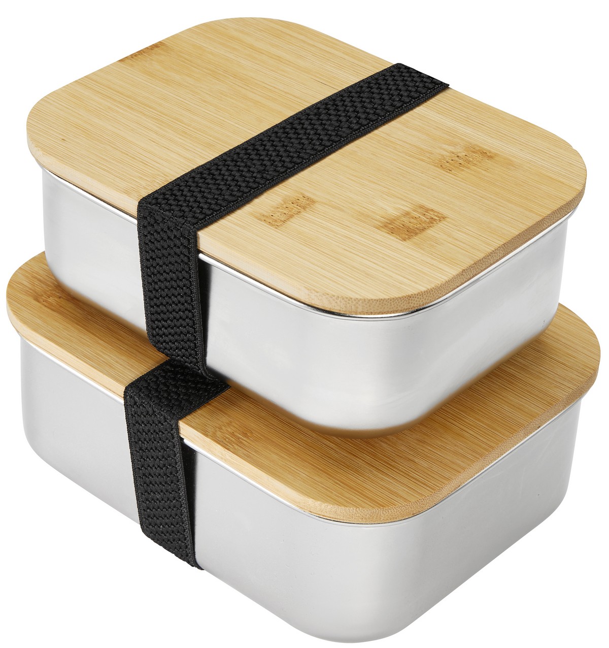 Stainless Steel Lunchbox mit Bambus-Deckel und Göffel