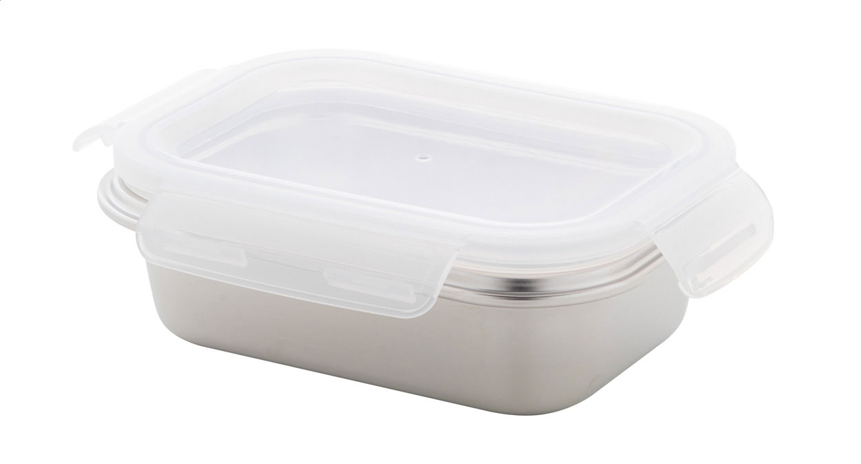 Lunchbox aus Edelstahl mit luftdichtem Verschlussdeckel aus PP-Kunststoff. Füllmenge: 650 ml.