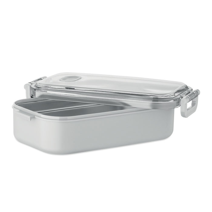 Lunchbox aus PP mit Innenauskleidung aus recyceltem Edelstahl. Luftdichter Deckel aus AS hält Speisen während des Transports frisch und sicher. Füllmenge: 650/750 ml mit / ohne Tablett.