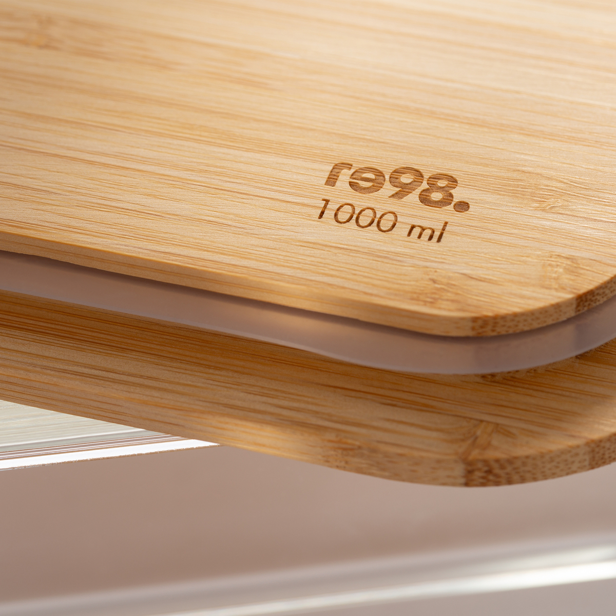 Eine trendige Kombination aus Bambus und Glas - RE98-Freshfusion vereint einen stylischen Look mit exzellenter Qualität. Die 1000 ml Lunchbox ist aus hitzebeständigem Borosilikat-Glas gefertigt und hält Temperaturen von bis zu 400 Grad stand. Daher ist sie ideal geeignet für den Einsatz im Ofen oder in der Mikrowelle (ohne den Bambus-Deckel). Die transparente, BPA-freie Silikondichtung auf der Innenseite des Deckels sorgt für auslaufhemmendes Verschließen. Den Essensbehälter aus Glas können Sie bedenkenlos in die Spülmaschine geben. Wir bieten für die Lunchbox RE98-Freshfusion verschiedene Werbeanbringungsmöglichkeiten. Auf dem Bambusdeckel können Logo und Slogans per 4C Tampondruck oder CO2-Lasergravur aufgebracht und effektvoll in Szene gesetzt werden. Der Artikel wird in einer hochwertigen Faltschachtel aus Papier geliefert.