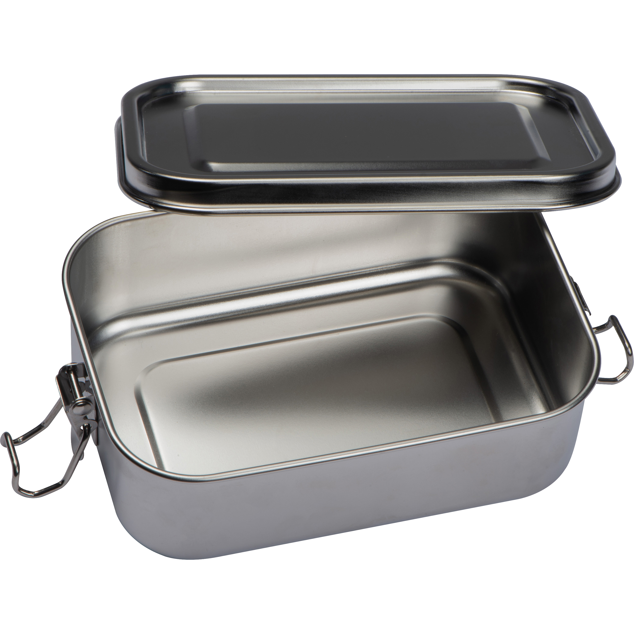 Langlebige und robuste Lunchbox (700 ml Fassungsvolumen) aus Edelstahl mit verschließbarem Deckel. Ihre Werbung wird auf den Deckel graviert.