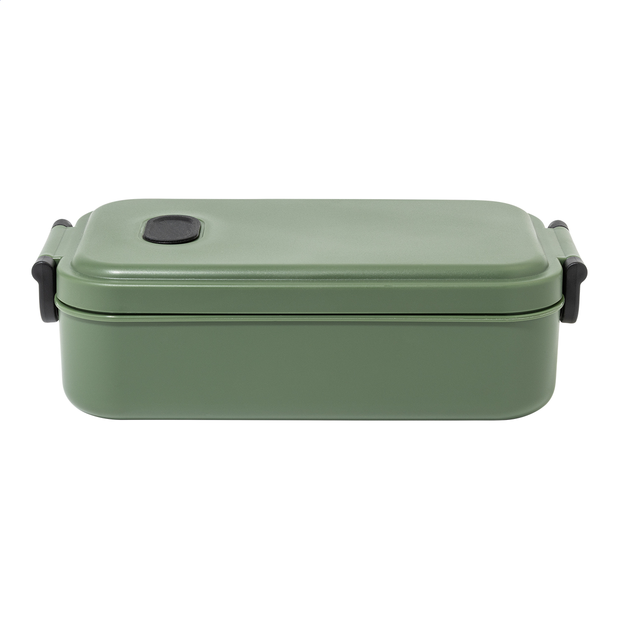 Lunchbox aus PP-Kunststoff mit luftdichtem Deckel, Silikonventil und Schnallenverschluss. Füllmenge: 1000 ml.