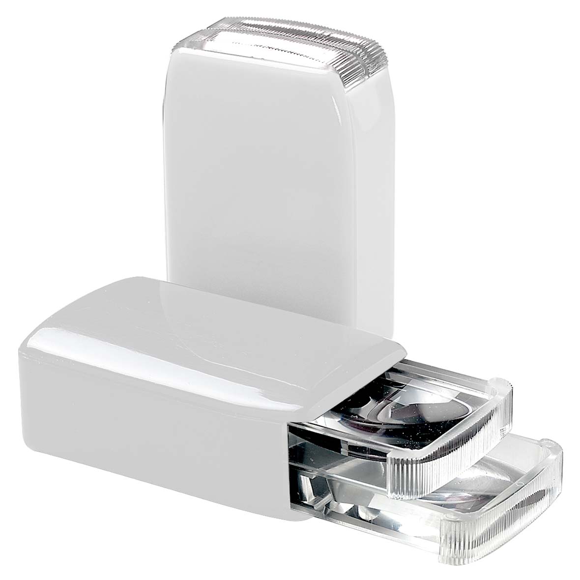 2 Lupen in einer. 3-fache und 6-fache Vergrößerung. Linsenöffnung 23 x 23 mm, Gewicht 26 g, Gesichtsfeld: 50 x 55 mm = 3-fach, 25 x 25 mm = 6- fach.